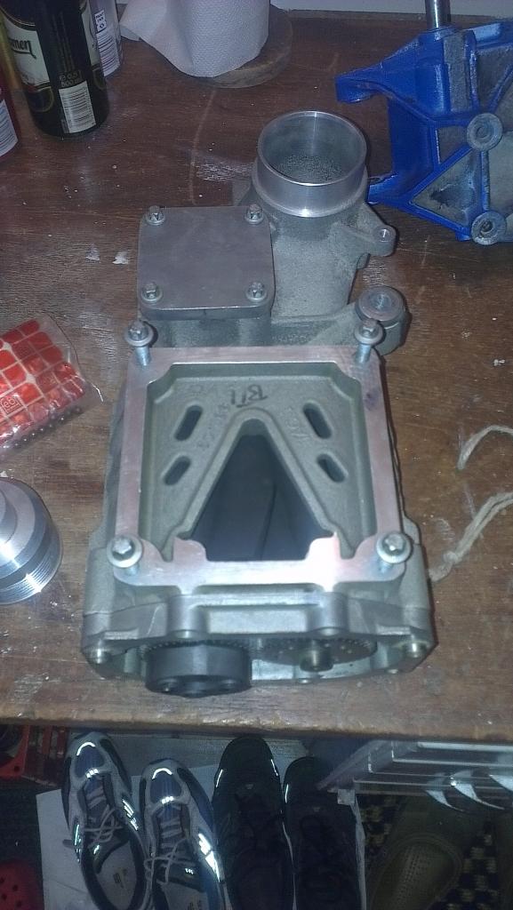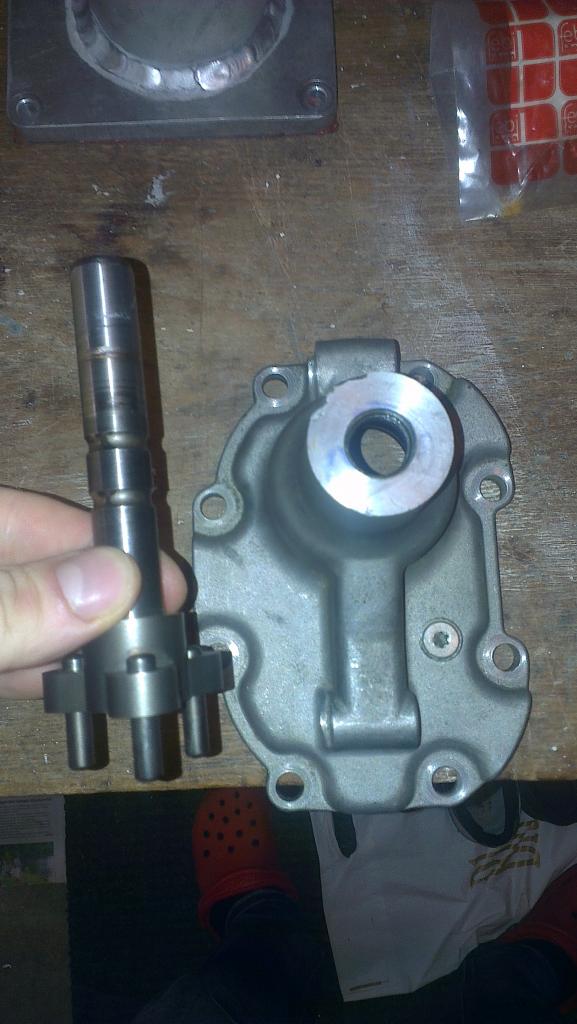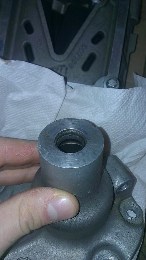 här ser man lite av den trasiga tätningen, och den konstiga nosen... hade varit hundra gånger smidigare med ett vanligt lager.