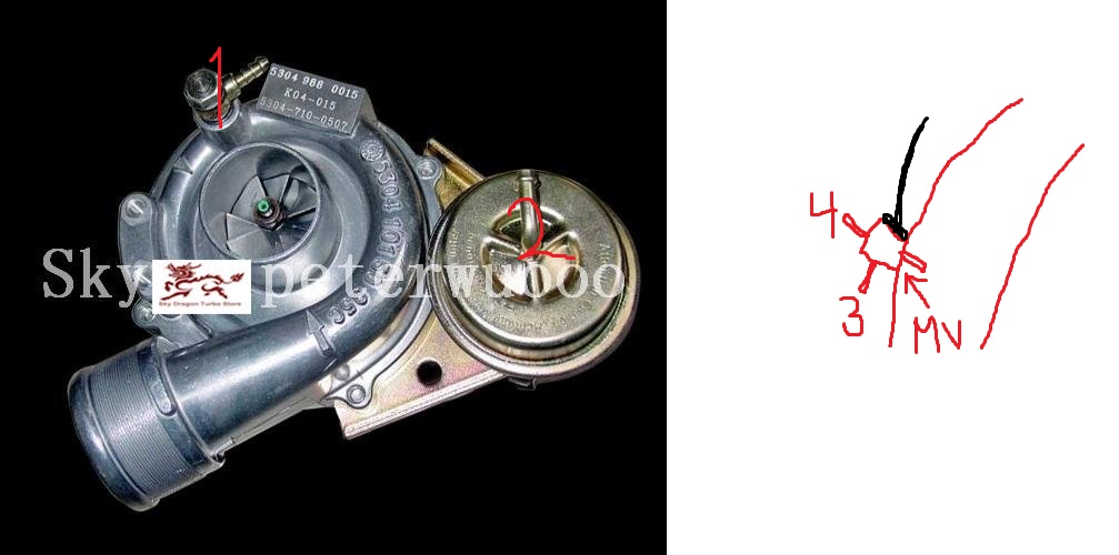 Bifogad fil 3825Kan visa lite vad ja gjort än så länge.Original så sitter de vaccum slang mellan 4-1 och 3-2 Men provad kopplar mellan 1-2 utan resultat både med och utan t-kors. allt turbo bilder ja finner ar slang mellan 1-2 därför ja provade samt att man sätter väl stryp ventilen mellan där? Alltså borde Mv (Magnetventil) vara utesluten: . ska kollar wg stången i morgon. Men så trångt mellan motor och turbo.