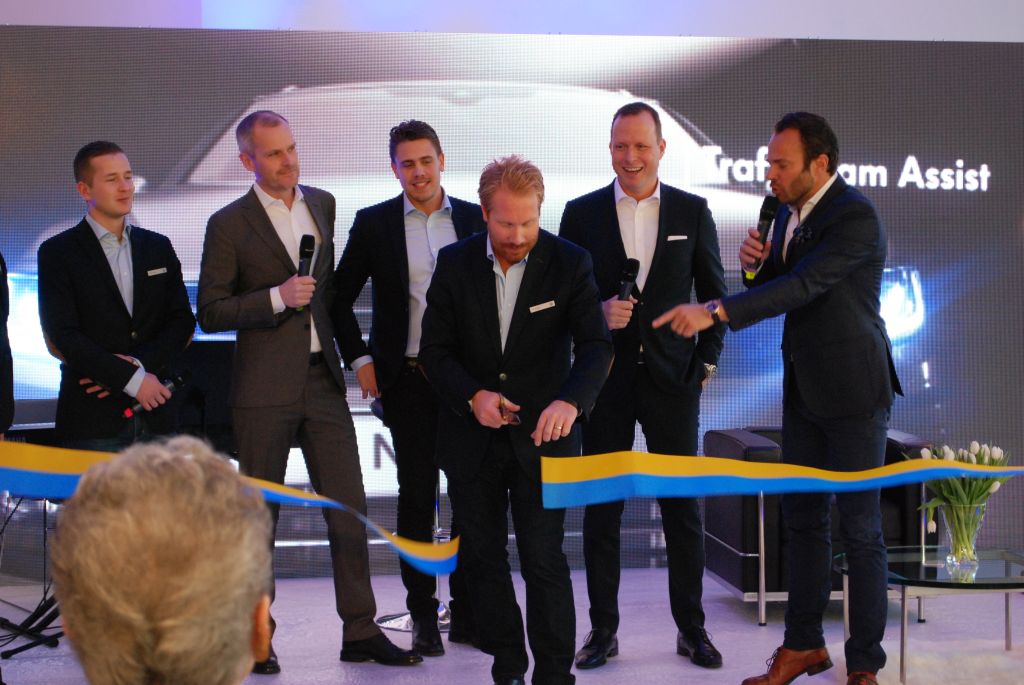 Ingen invigning är en invigning utan bandklippning. Kändisar och Volkswagen-toppar.
