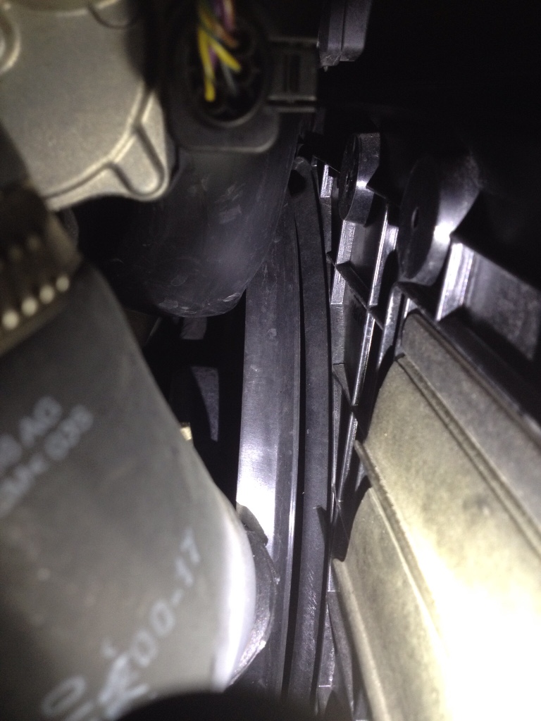 Detta pga att intercoolern bygger så mycket in mot motorn så att plastböjen ligger mot fläkten.