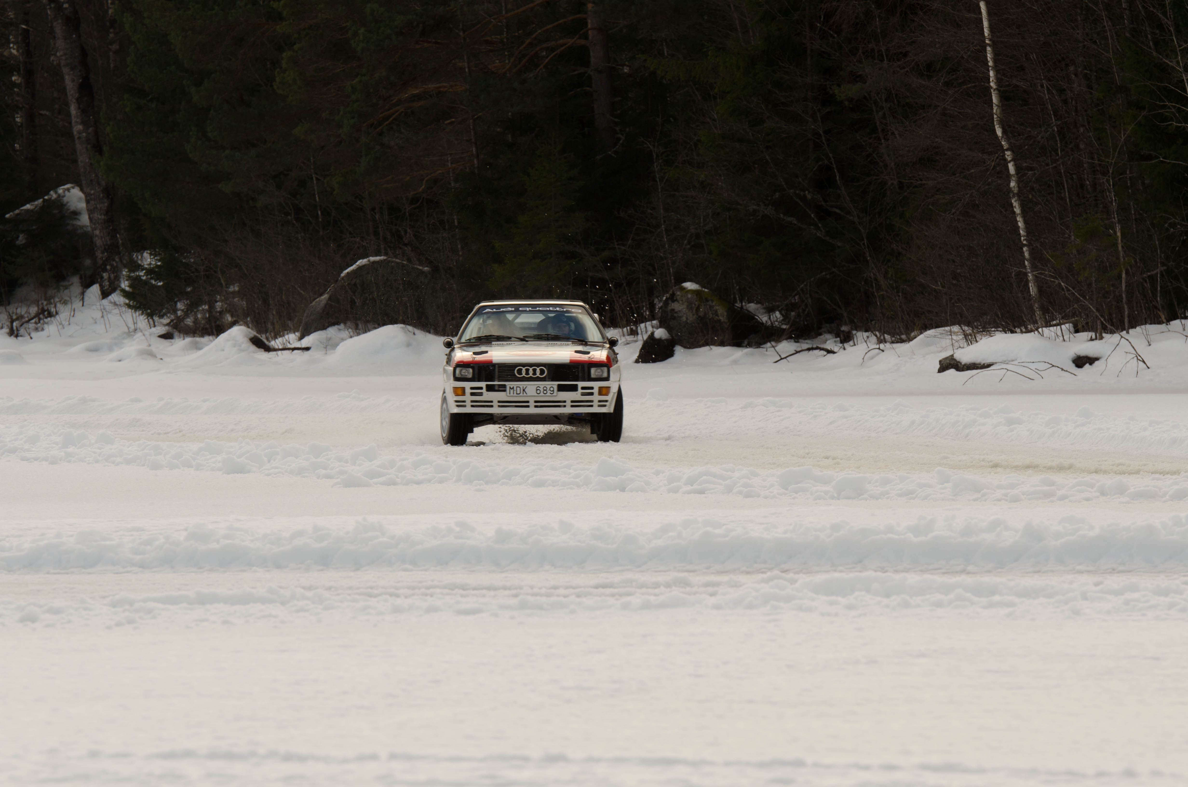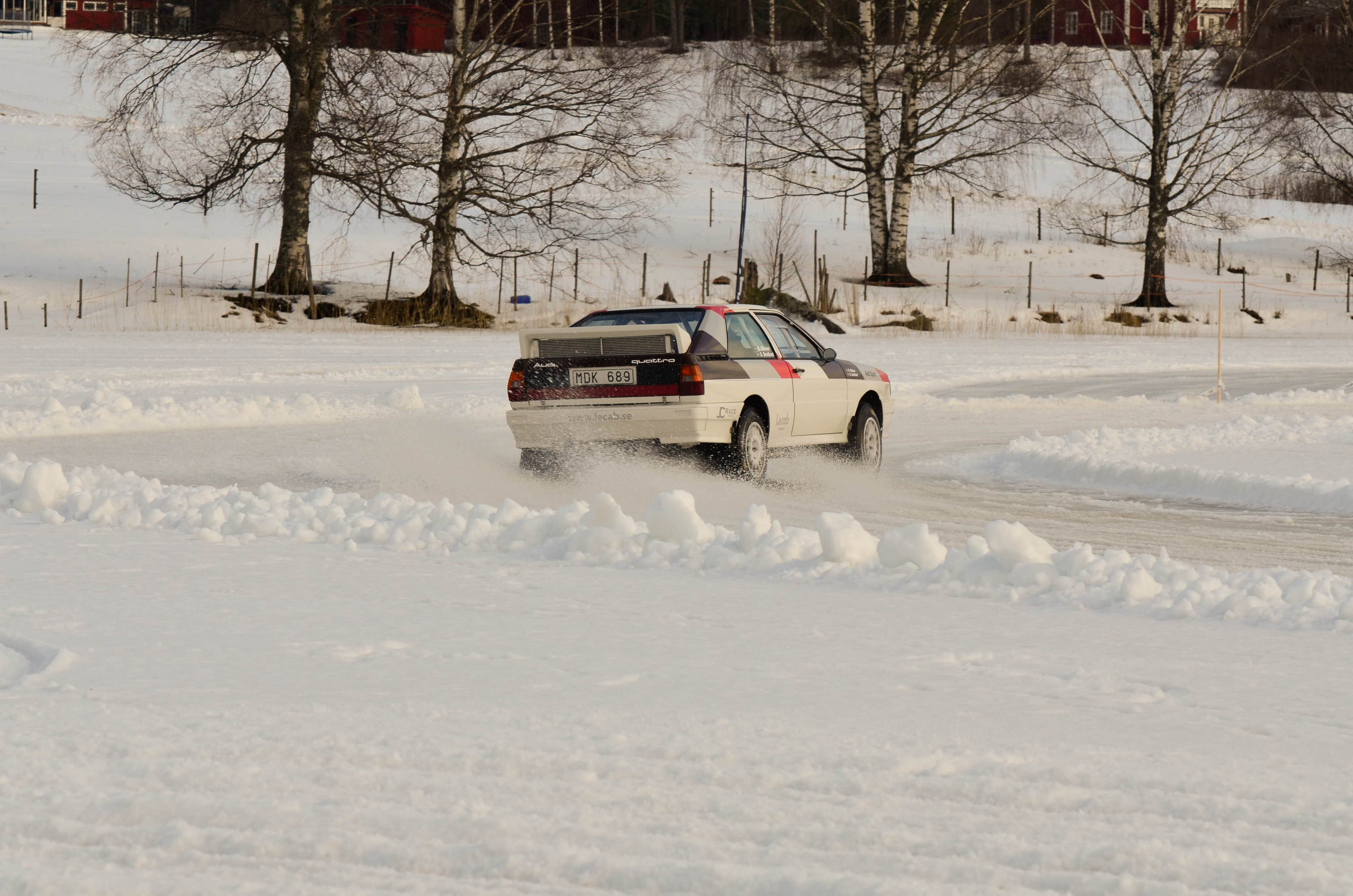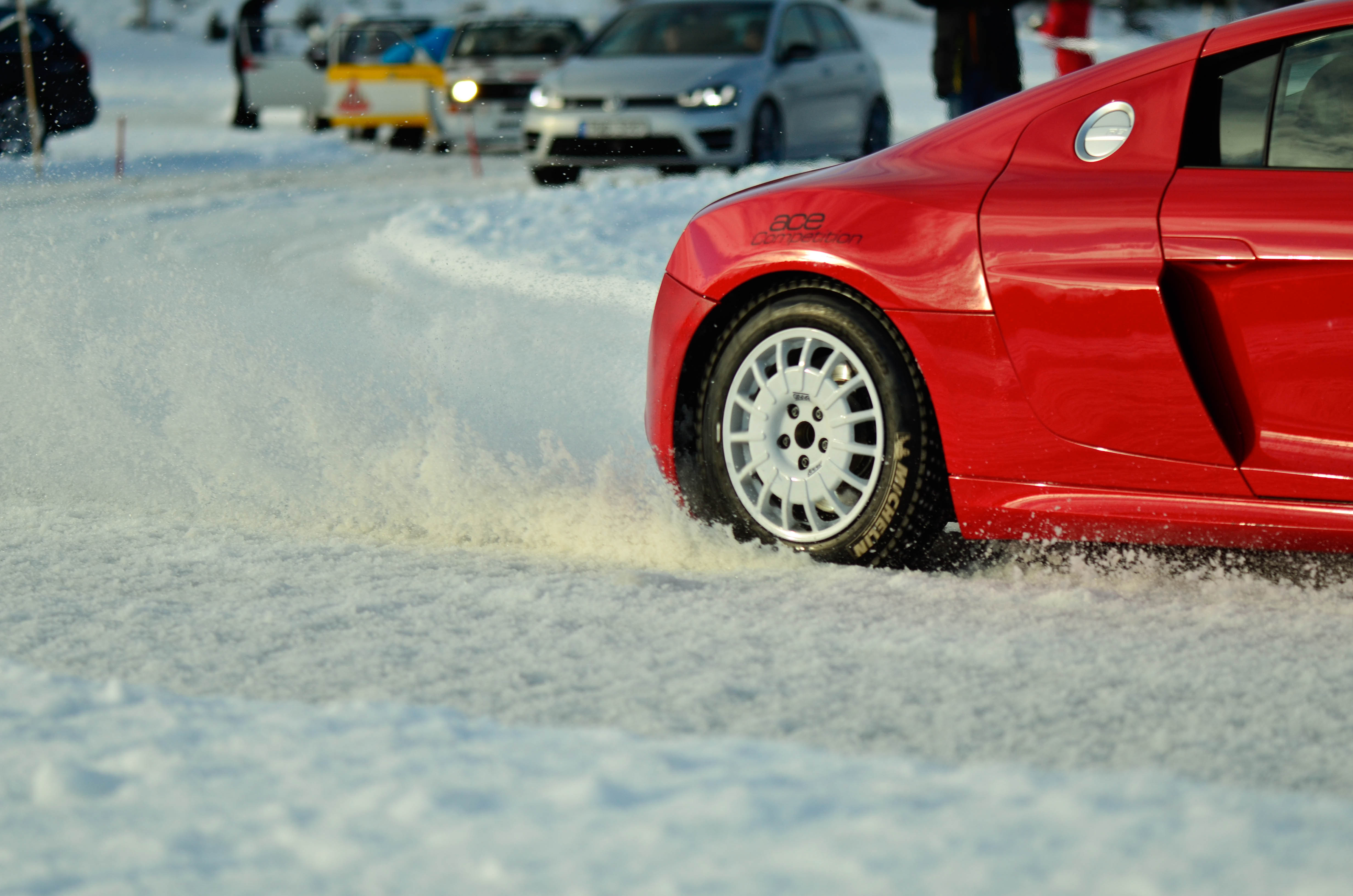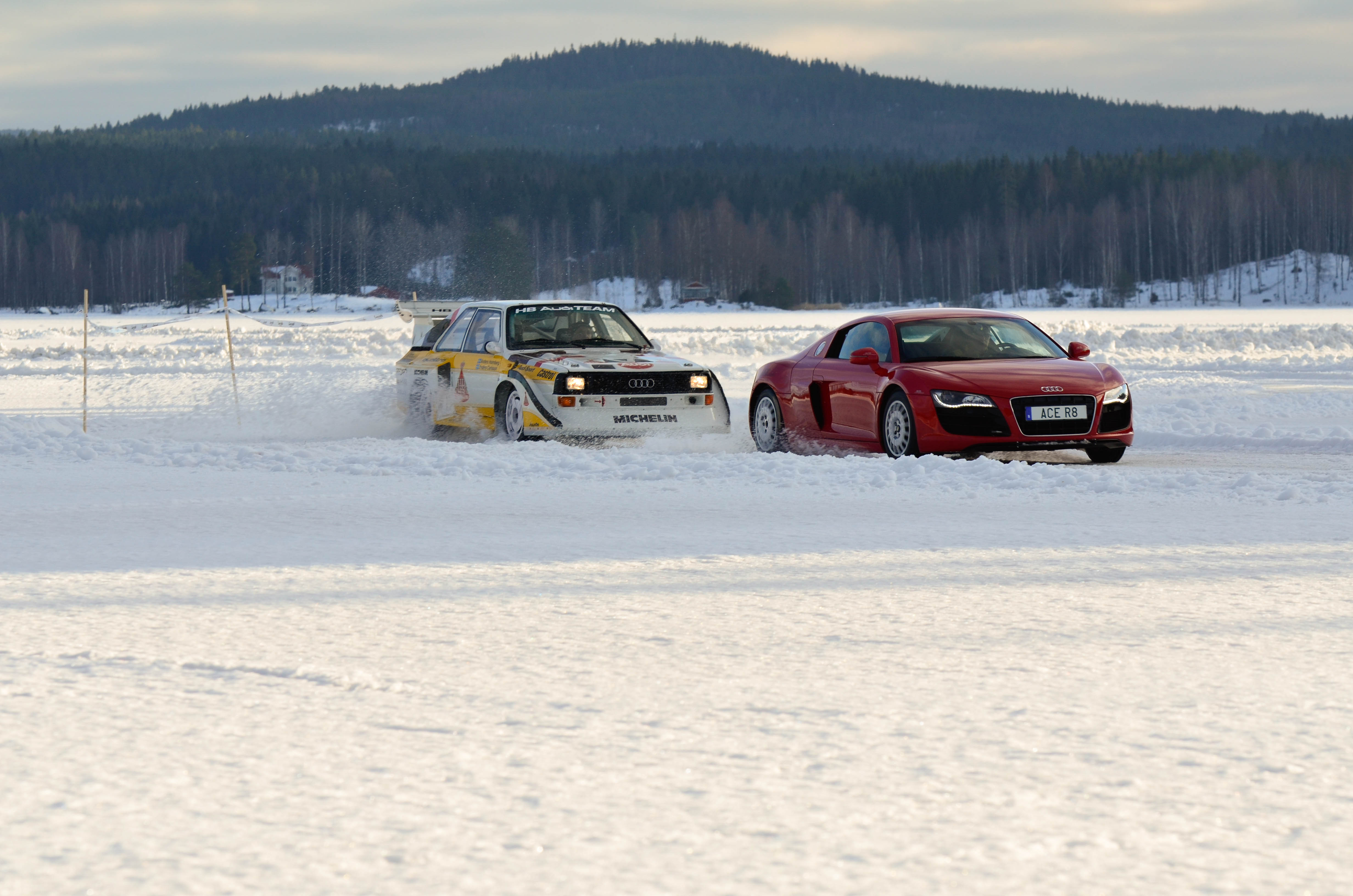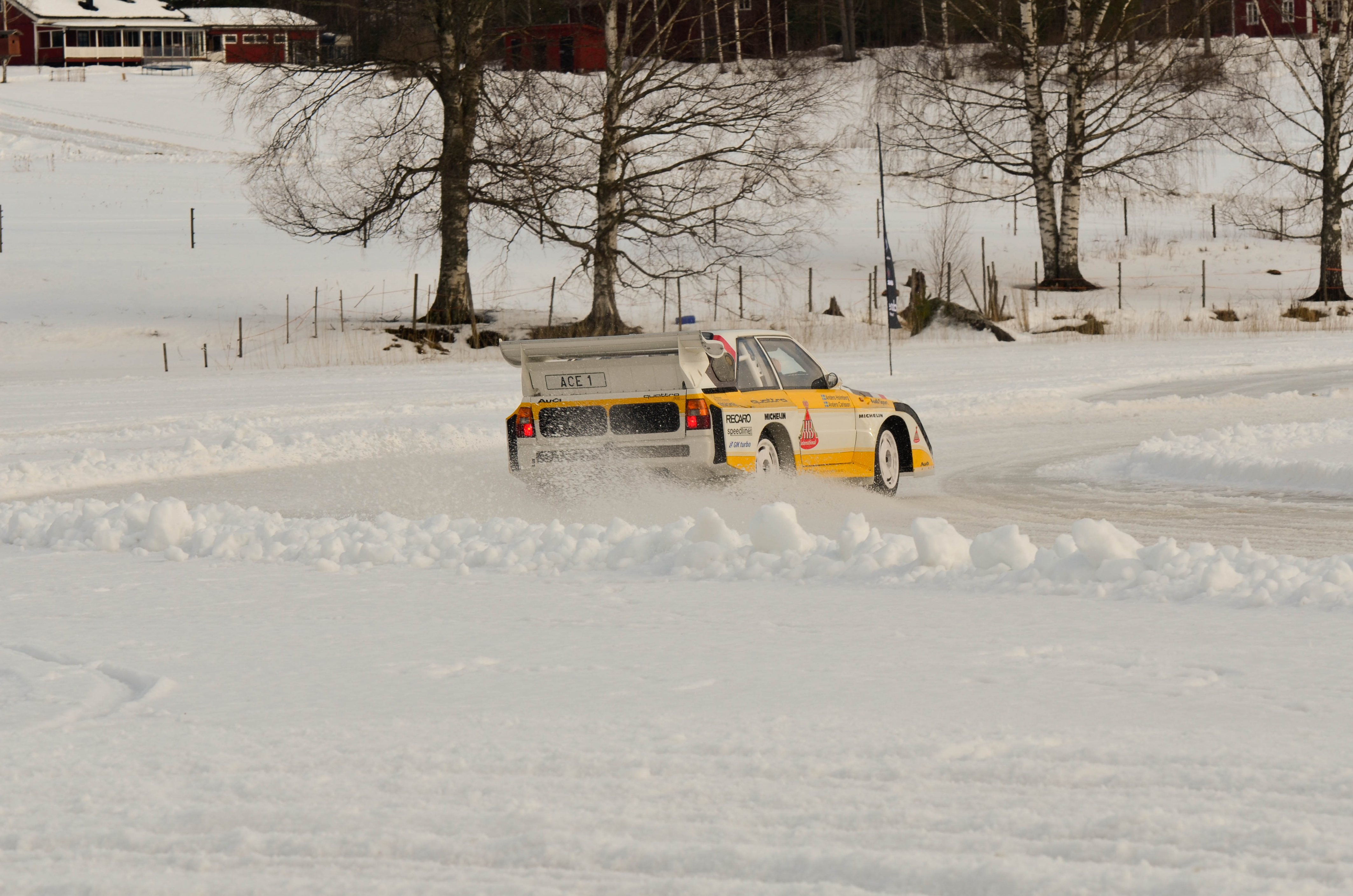 Efter att WRC bilarna hade kört sina åk och man börjat på WRC2 så var det dags att återvända till bussarna för att ta oss vidare upp till sjön Velen som ligger utanför byn Ganterud. Här var det plogat två banor ute på isen, en för medåkning och en för att själv kunna testköra med två olika bilar. Medåkningen stod Boråsfirman ACE-Competition för och här fans en Audi R8 V10, en Audi S1 UrQuattro och en Audi SportQuattro. Till rådighet för att själv testa på lite iskörning hade LECAB BIL ställt upp med en MK7 Golf R och en sprillans ny 240hk Passat 2.0 TDI DSG 4motion GTS sportcombi.
