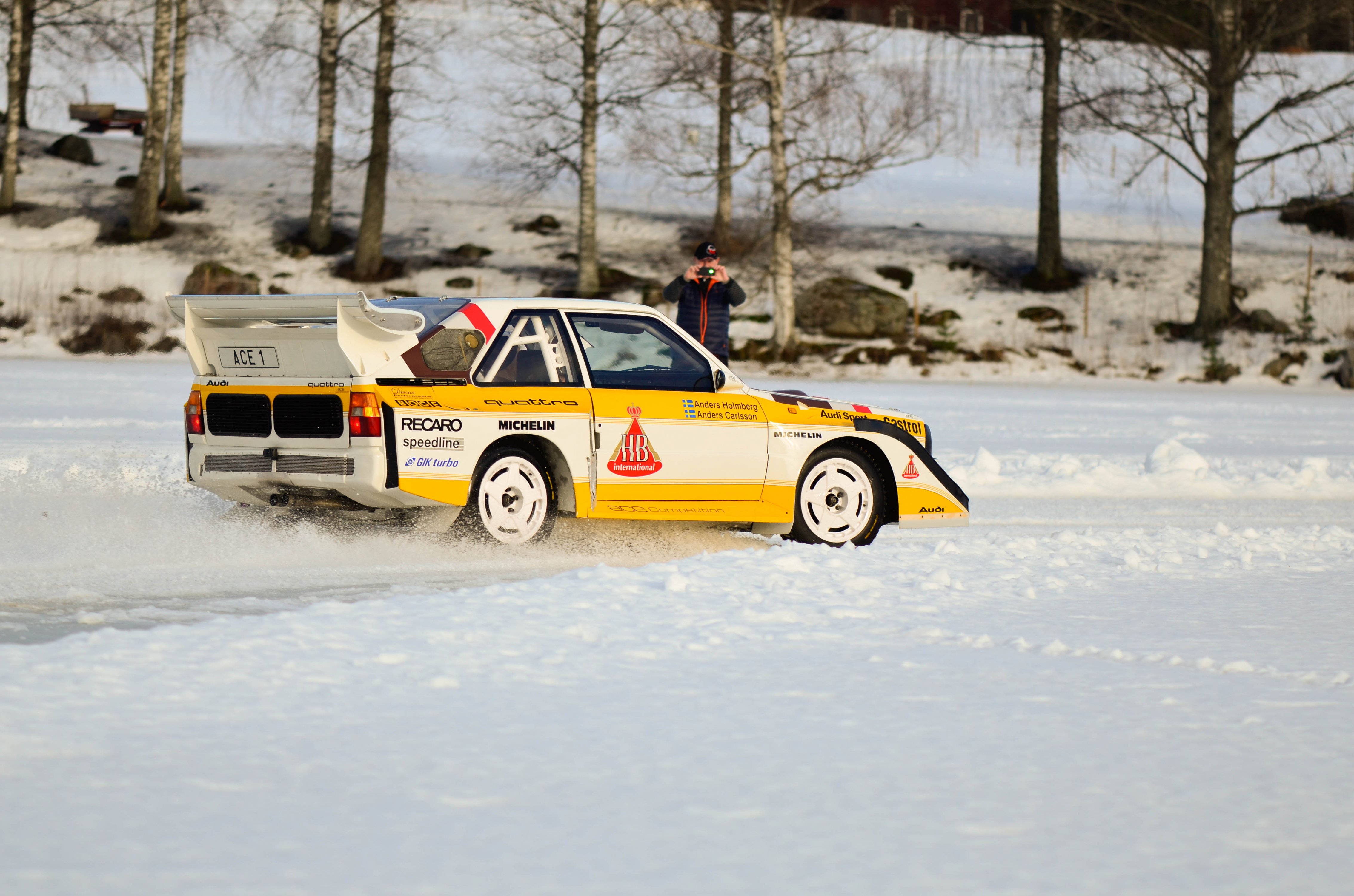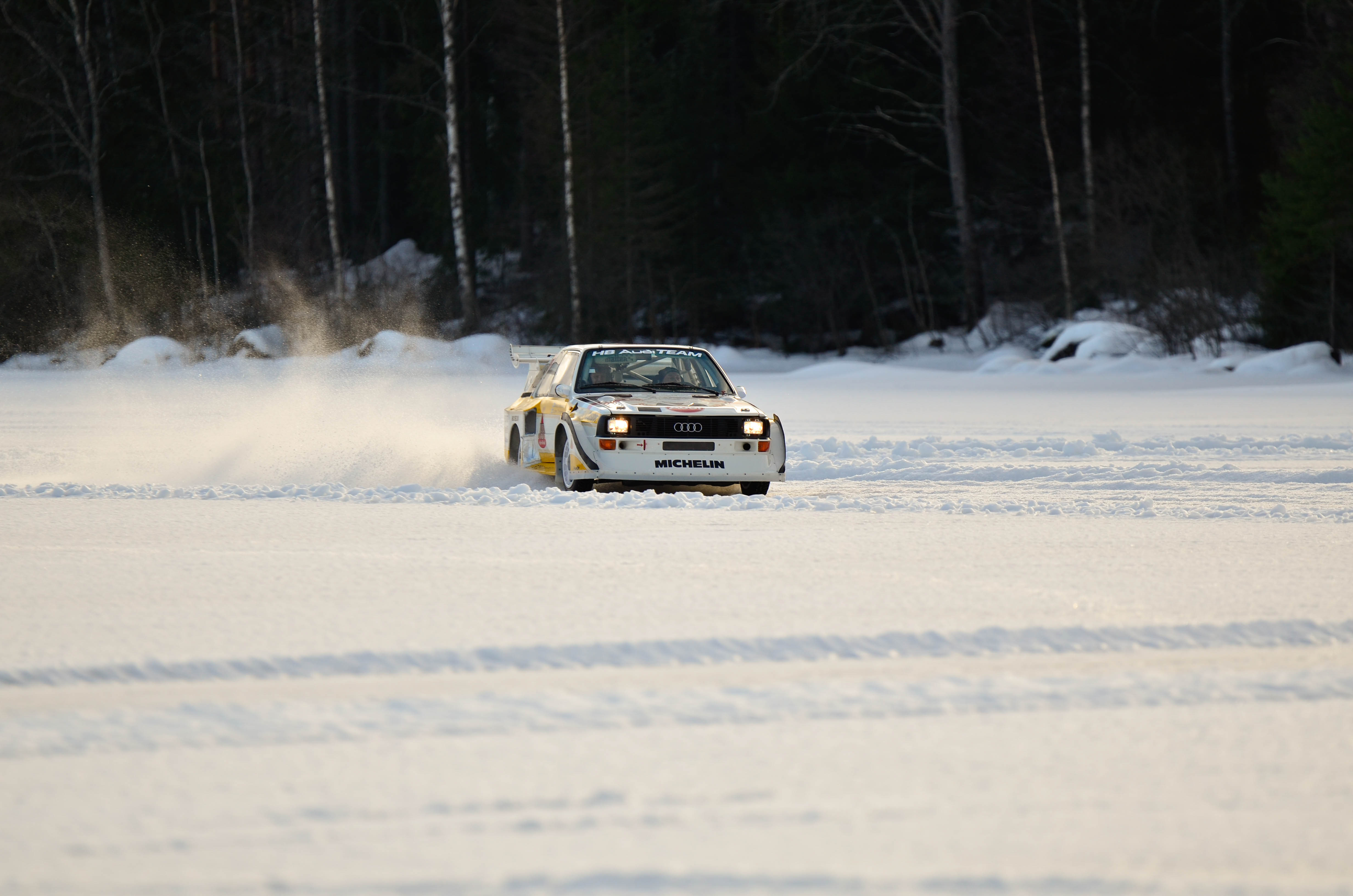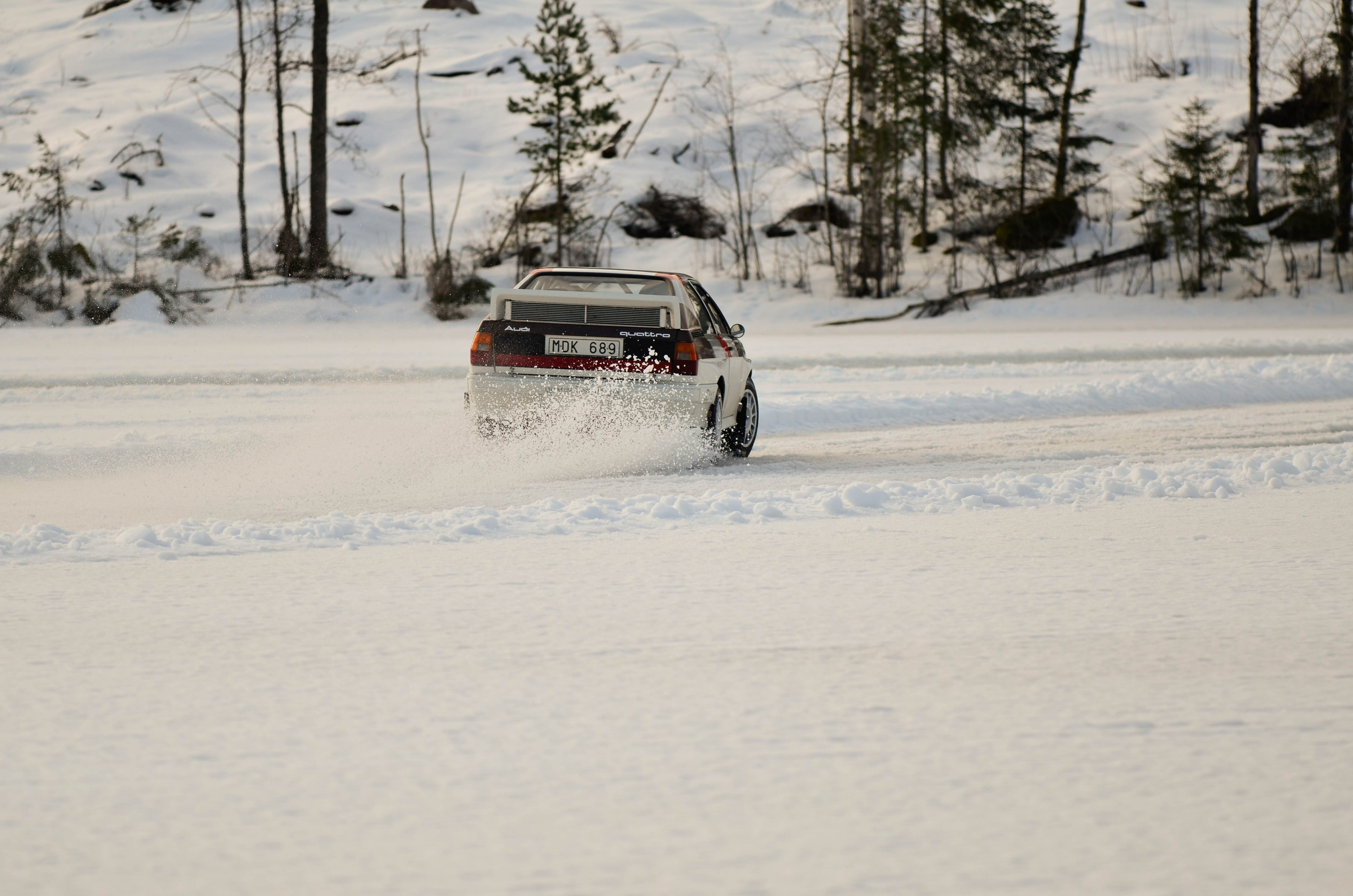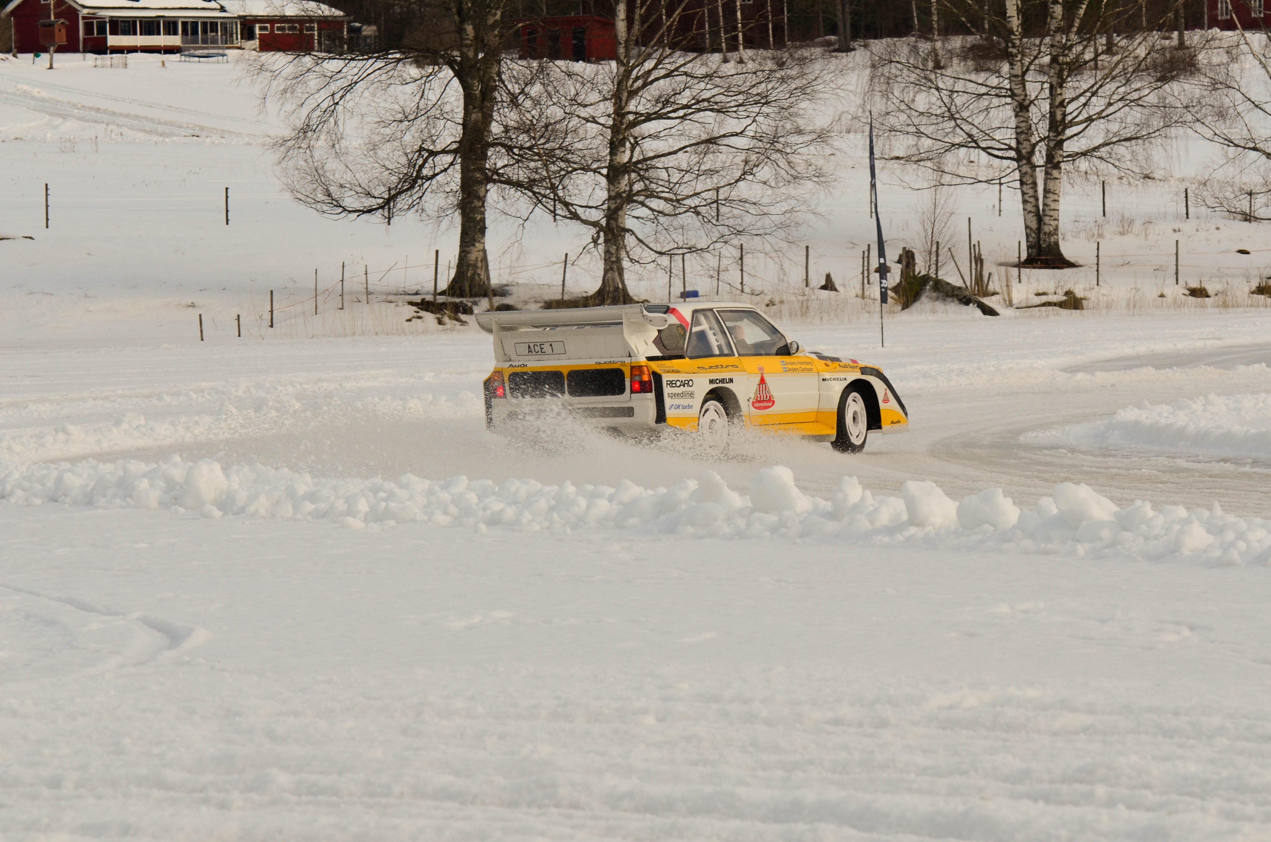 Efter att WRC bilarna hade kört sina åk och man börjat på WRC2 så var det dags att återvända till bussarna för att ta oss vidare upp till sjön Velen som ligger utanför byn Ganterud. Här var det plogat två banor ute på isen, en för medåkning och en för att själv kunna testköra med två olika bilar. Medåkningen stod Boråsfirman ACE-Competition för och här fans en Audi R8 V10, en Audi S1 UrQuattro och en Audi SportQuattro. Till rådighet för att själv testa på lite iskörning hade LECAB BIL ställt upp med en MK7 Golf R och en sprillans ny 240hk Passat 2.0 TDI DSG 4motion GTS sportcombi.