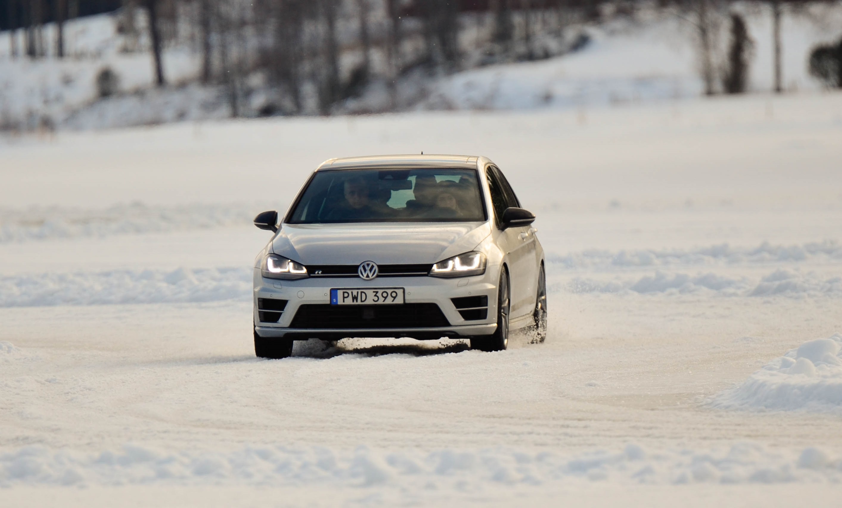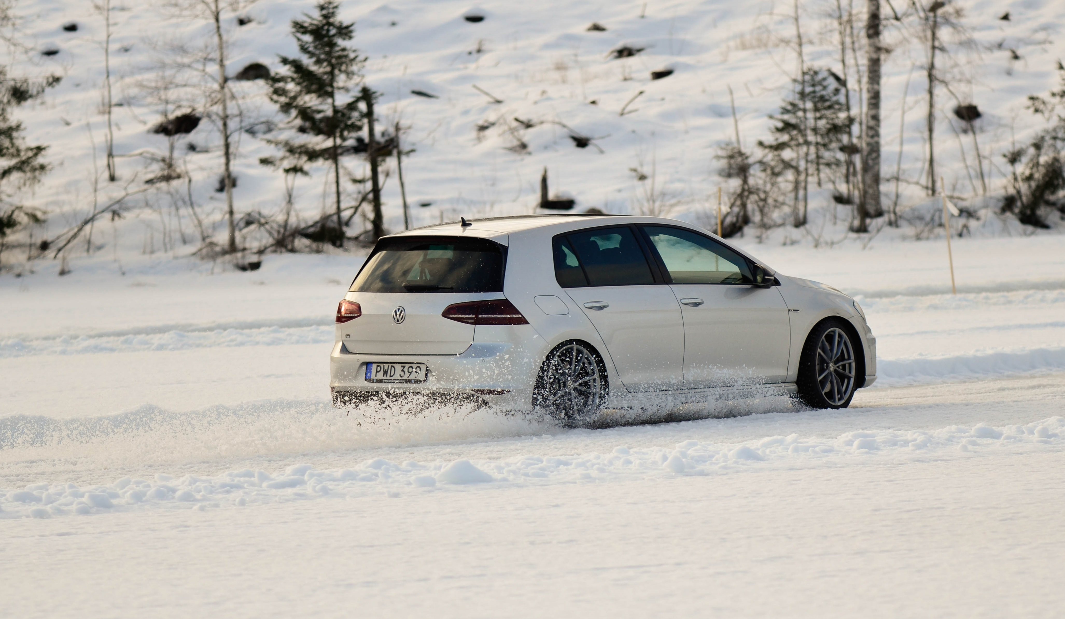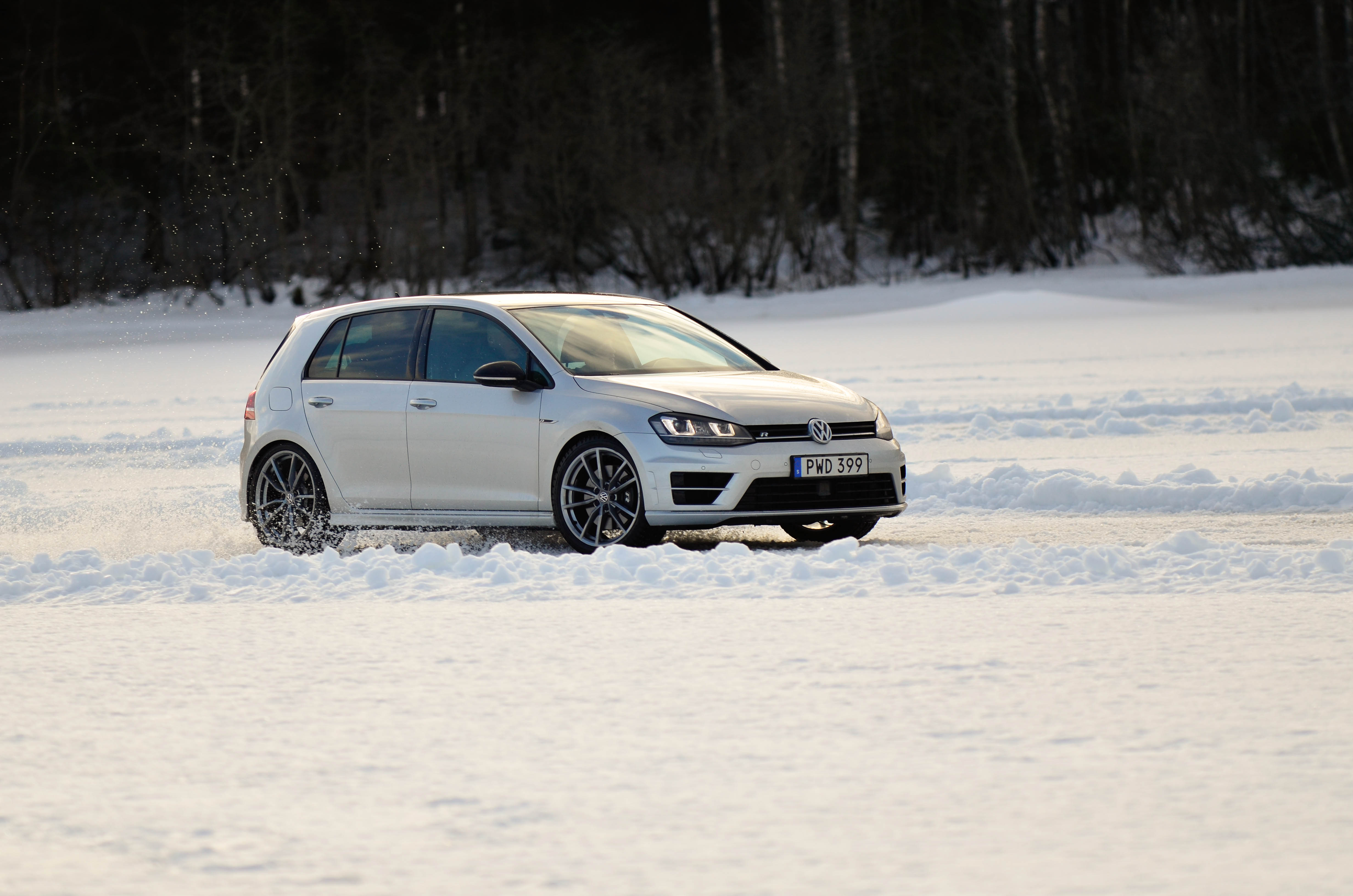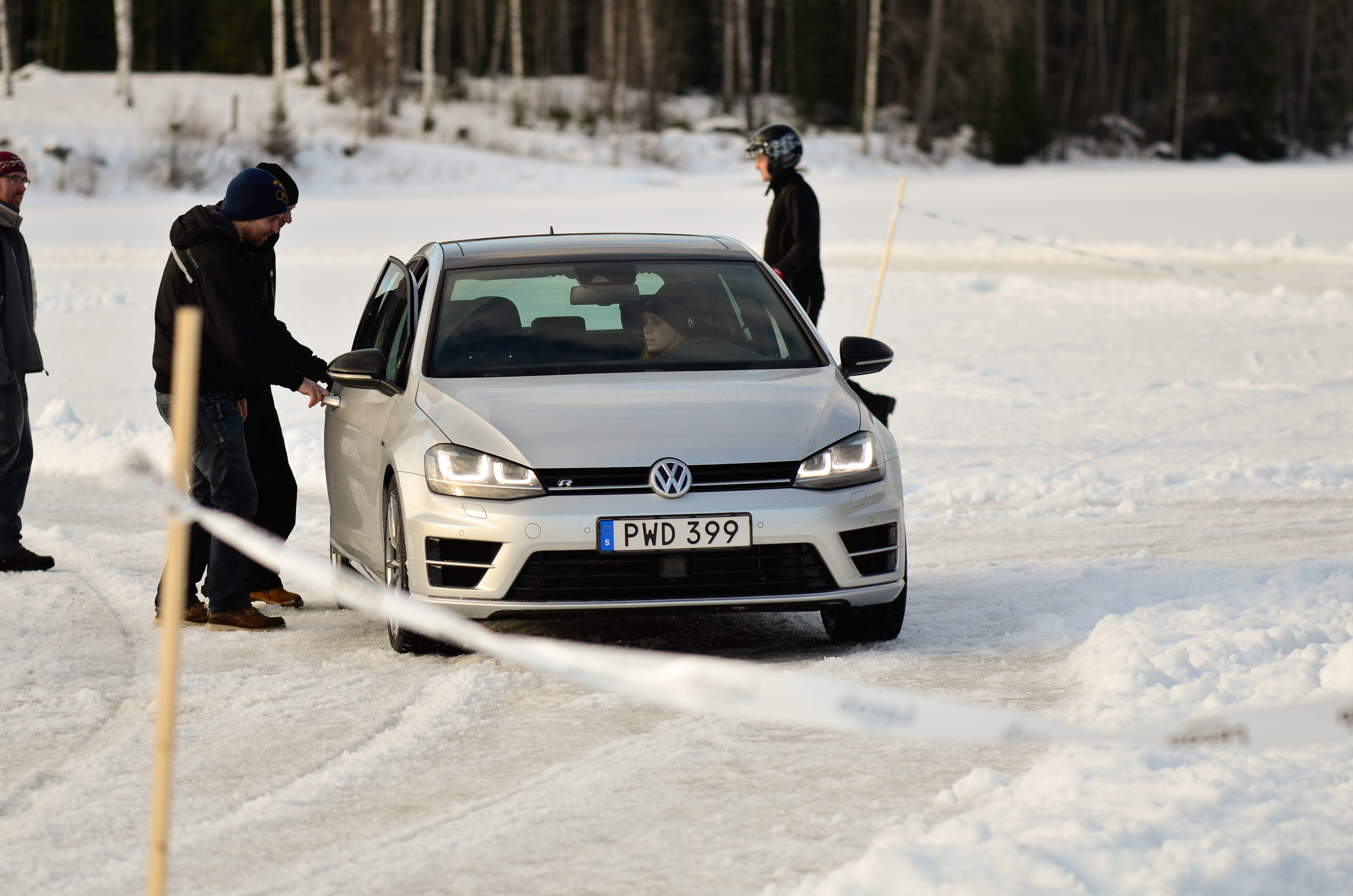 Det blir naturligtvis en del kö när 120-130 pers skall slussas igenom 5 bilar totalt så jag hann med en medåkning i en MK7 Golf R framförd av tidigare VW föraren Mikaela Åhlin Kottulinsky, som nu bytt till Audi, och ett par varv på isen i både golfen och passaten på banan man själv fick sätta sig bakom ratten. Kan bara säga att denna tjej kan köra, och med fulldubbade vinterdäck med ca 7mm utstick gjorde inte golfen dåligt ifrån sig på isen, även om den hade ca hälften av effekten som dom andra tre bilarna hade, hade hon inga problem med att hålla jämt med dom.