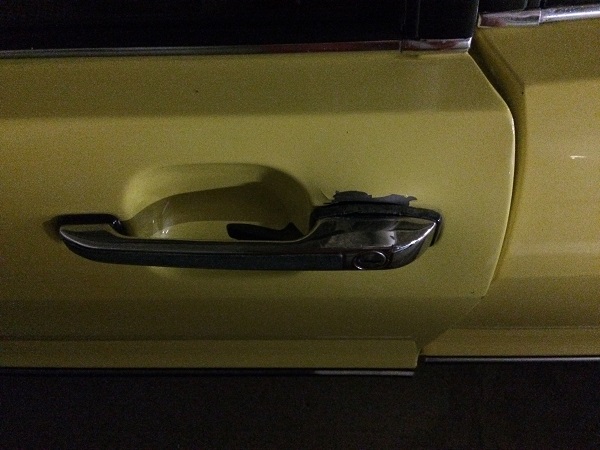 Var tanken bara inbrott eller skulle de sno bilen med tanken på skadorna vid rattlås på bilderna?