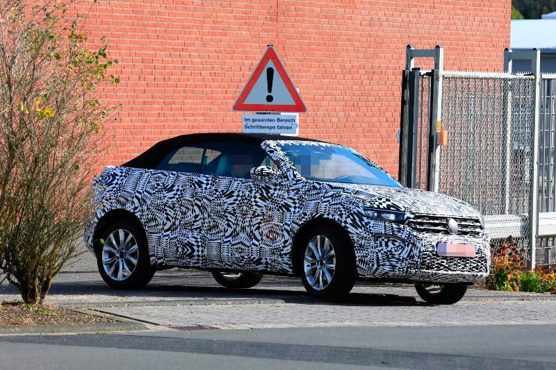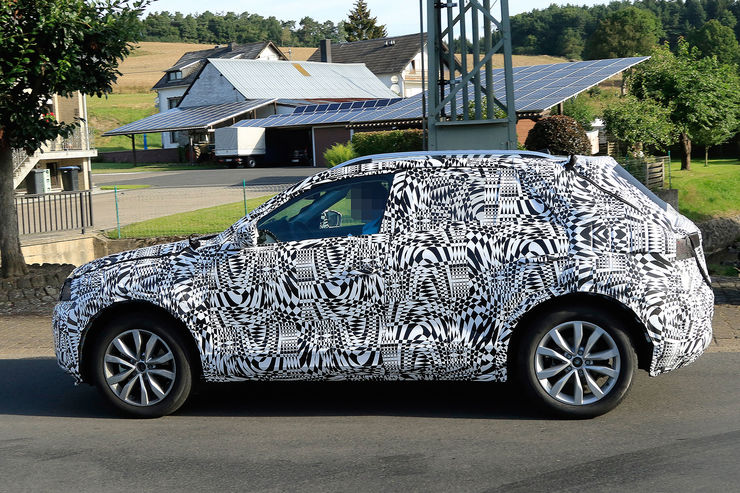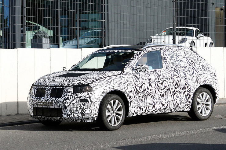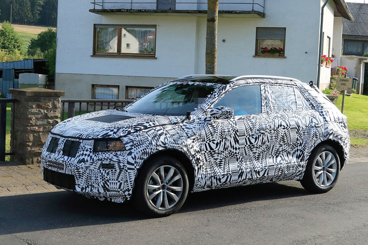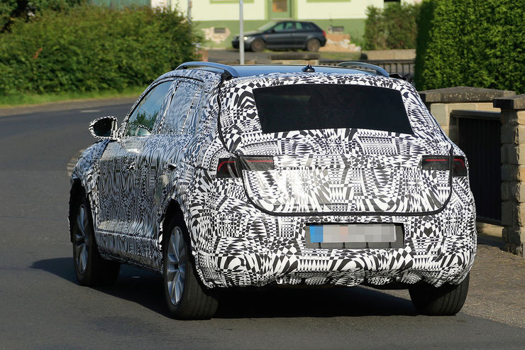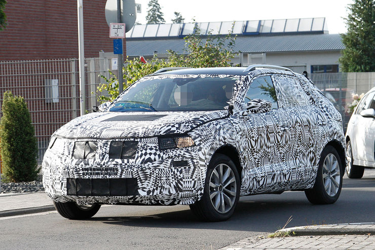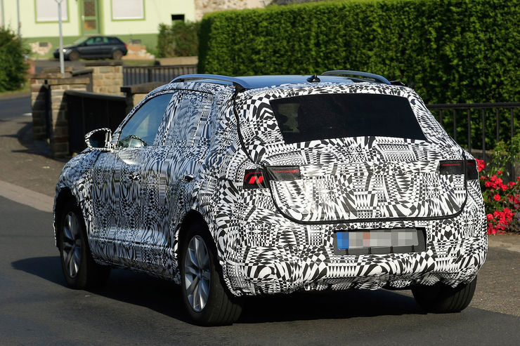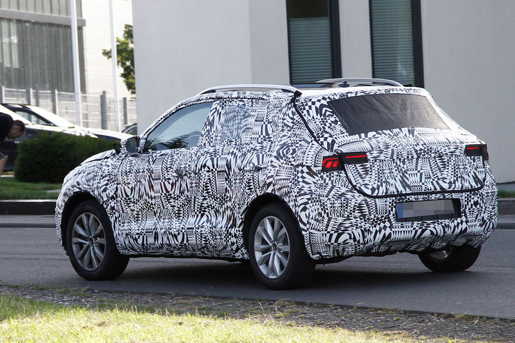 Set to make its debut in October, the VW T-Cross test car pictured here tries to disguise itself in places as the bigger T-Roc, including the cladding on the bumpers and lights all around. According to official sketches, the final production version will feature square-shaped taillights connected with a light bar across the rear end.
