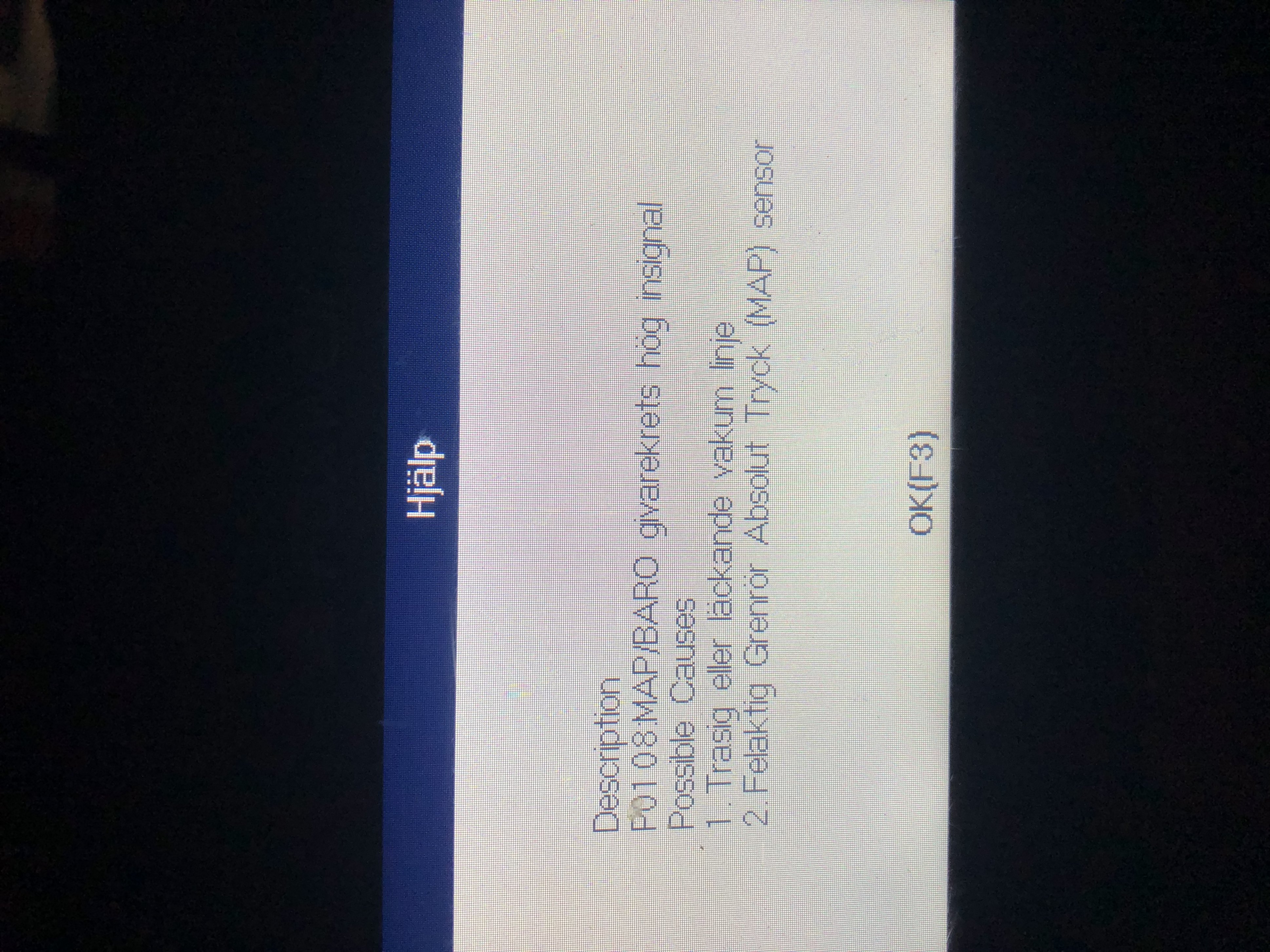 När felet uppstår tänds EPC och motorlampa vanligen och motorn blir svag.