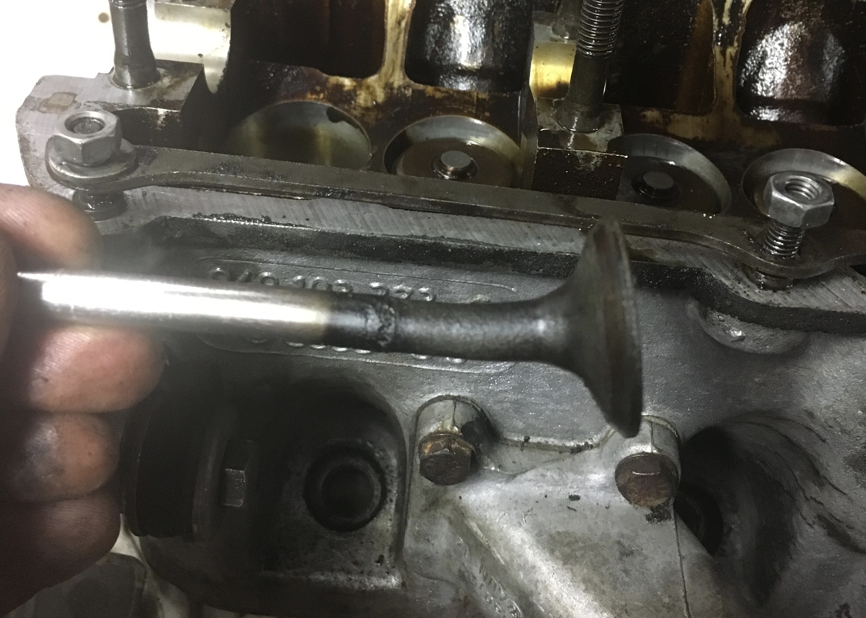 EN eller flera ventiler har slagit i kolvarna och blivit krökta, toppen måste av för åtgärd