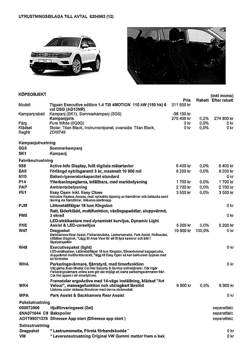 Du väljer en Allspace 190 hk som väger 200 kg mer än vanliga Tiguan 190 hk och 110kg mer än 180 hk.