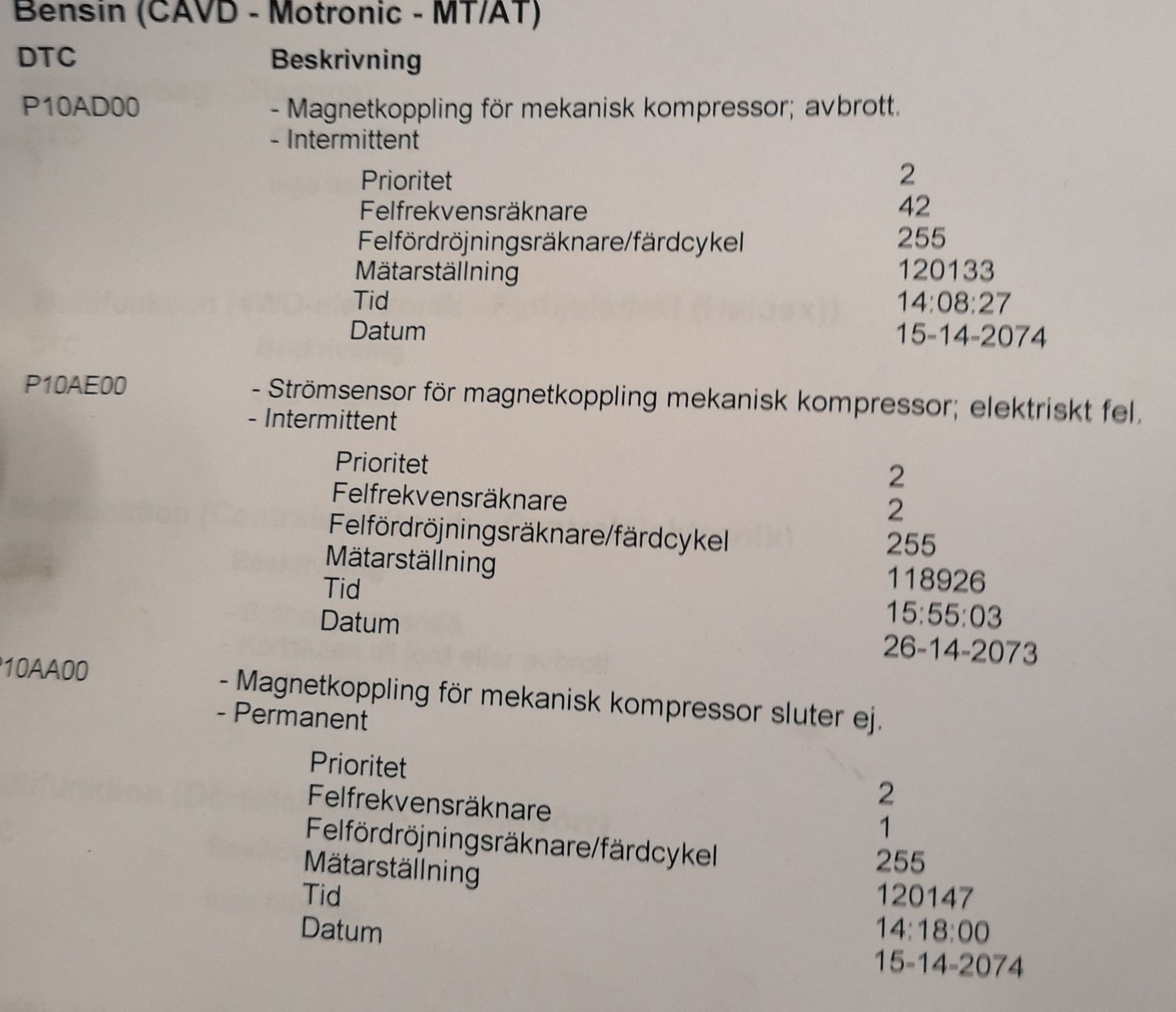 Jag har fått lite felkoder från verkstaden när de felsökte min bil, men får ingen förklaring vad det kan vara. Och på detta forum borde det ju finnas någon som kan hjälpa mig på vägen. Vill ju ha lite koll så att det inte blir för dyrt.