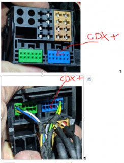 Planen alltså att "pinna-in" ett stift så att jag kan använda stift 4 (CD changer, voltage supply, positive - CDX+) ovan som "remote turn on" för båda förstärkarna (eftersom jag inte hade något stift/installerat på just den utgången).
