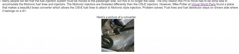 Planerar att ha min 9a Motronic styrning på "rätt" MK1 sida i bilen. och tydligen så passar inte spridarna i KR bränslerören. (har dock inte kollat själv ännu) Gammal länk i klippet, till en ny firma som inte har dessa idag tydligen.