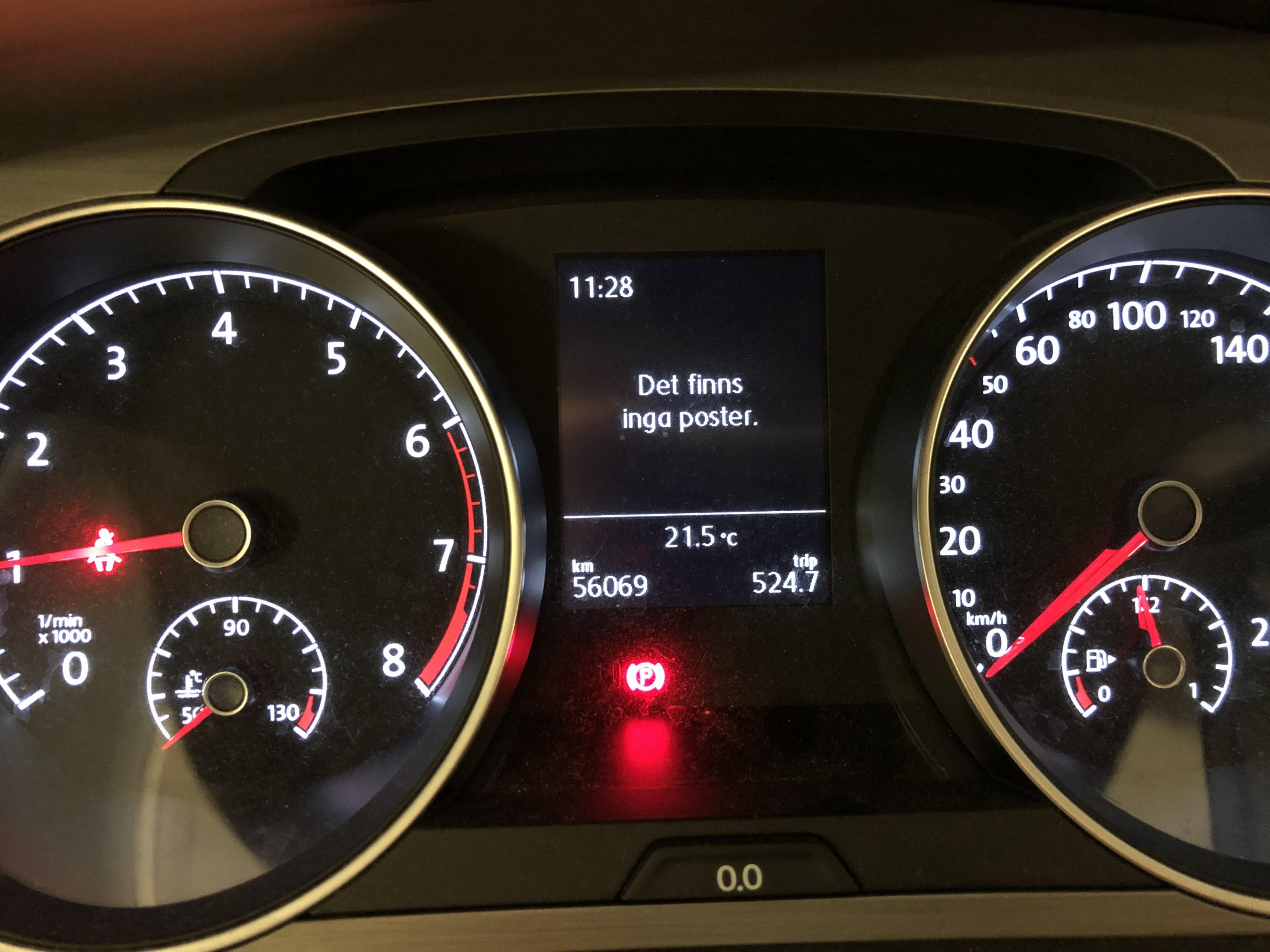 Mitt kombiinstrument visar sedan några dagar texten "Det finns inga poster". Det går inte längre att scrolla mellan att visa hastighet, medelhastighet, oljetemp etc.