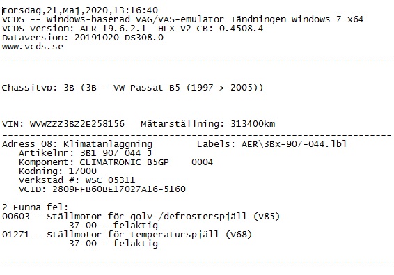 Tydligen verkar det vara fel på 2 olika spjällmotorer.