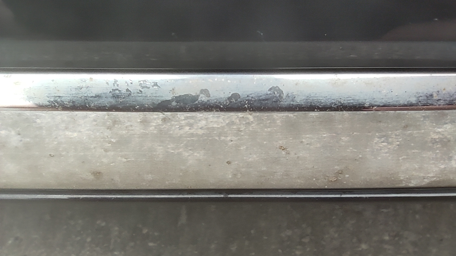 Jag tycker nästan det verkar som om listerna är skadade på nåt vis, som om de ärgat. Det kanske inte ens går att polera bort?