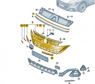 Ska du uppgradera grillen behöver du även byta kofångare då formen på grillen skiljer mot gamla. Kollade lite i Etka på det där och ganska mkt som skiljer. Huv och skärmar dock samma och strålkastare också verkar det som.