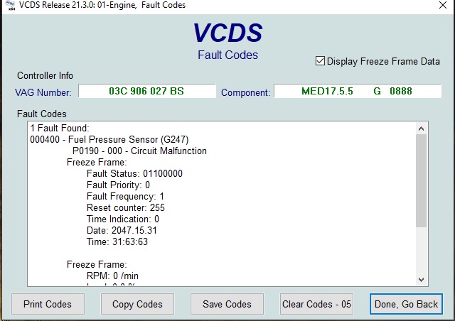 Jag har en Golf kombi från 2009 (Manuell låda) som gått 24' mil, förra veckan när jag åkte hem från jobbet (enkel resa 8 mil) så gjorde jag ett stopp på c:a 5 minuter och när jag skulle fortsätta så vägrade bilen att starta, startmotorn gick som vanligt men inget liv. Bogserade hem den och kopplade in VAG-Com för att läsa felkoder men det var tomt. Tanken är halvfull, lågtrycksbränslepumpen prime'ar när jag öppnar dörren eller vrider på tändningen, tog ur tändstiften och kollade gnista, det gnistade på alla 4. Tog kompprov, låg mellan 9-11bar. Lossade på bränsleledningen och kontrollerade att det kom bensin när jag vred på tändningen och det gjorde det. Plockade loss högtryckspumpen för att se om det såg konstigt ut där, hittade inget, kollade bränsletryck med VAG-Com, 90Bar. Låter jag bilen stå ett dygn då hostar den till i ett par sekunder och hoppar nästan igång sedan är det dött igen. Lossade kontakten för kamaxelgivaren och körde lite på startmotorn, då visade VAG-Com felkoder för det, satt tillbaka kontakten, rensade felkoden och testade igen, inga nya felkoder. Nu har jag slut på idéer, någon här som kan peka mig i någon riktning? Jag byter olja o filter regelbundet var 1500 mil, det blir minst 2 gånger per år. Jag hade problem förra hösten då den under belastning runt 2-2500 varv misstände, läste ut felkoder och först var det misständning på cylinder 1, om jag tog det lugnt förbi 2-2,5 eller gasade på ordentligt så blev det ingen misständning, köpte nya tändstift och bytte men det blev ingen skillnad, flyttade runt tändspolarna men ingen skillnad, tog kompprov men hittade inget konstigt. Till slut när den precis hade slagit över 23' mil så gick den in i limp-mode på vägen hem från jobbet. Det var dåligt väder då så jag lät den stå en dag sedan tog jag ut felkoder och då var det misständning på flera cylindrar. Ryckte återigen ut alla spolar, kollade gapet på tändstiften och resettade koderna, lät den också stå med batteriet av över natten. Efter att jag monterade ihop den igen så slutade misständningarna och har inte återkommit.