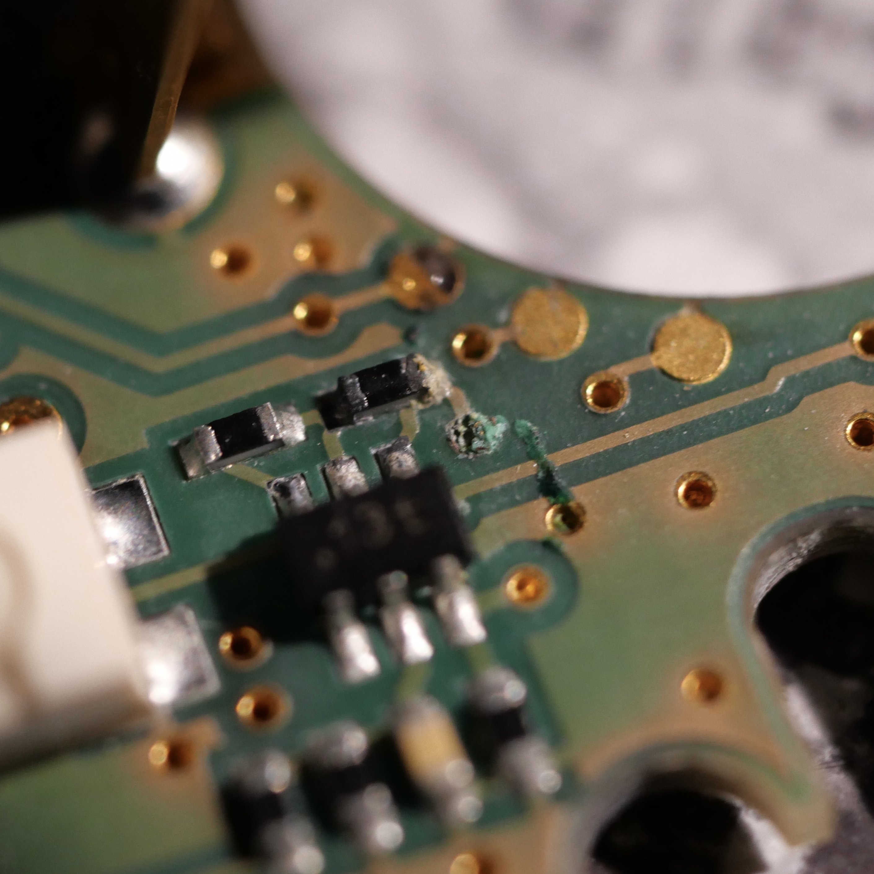 Rejält rengjort med isopropanol, men några komponenter ser inte så roliga ut. Troligen kommit fukt i fjärren...Bifogad fil 13229