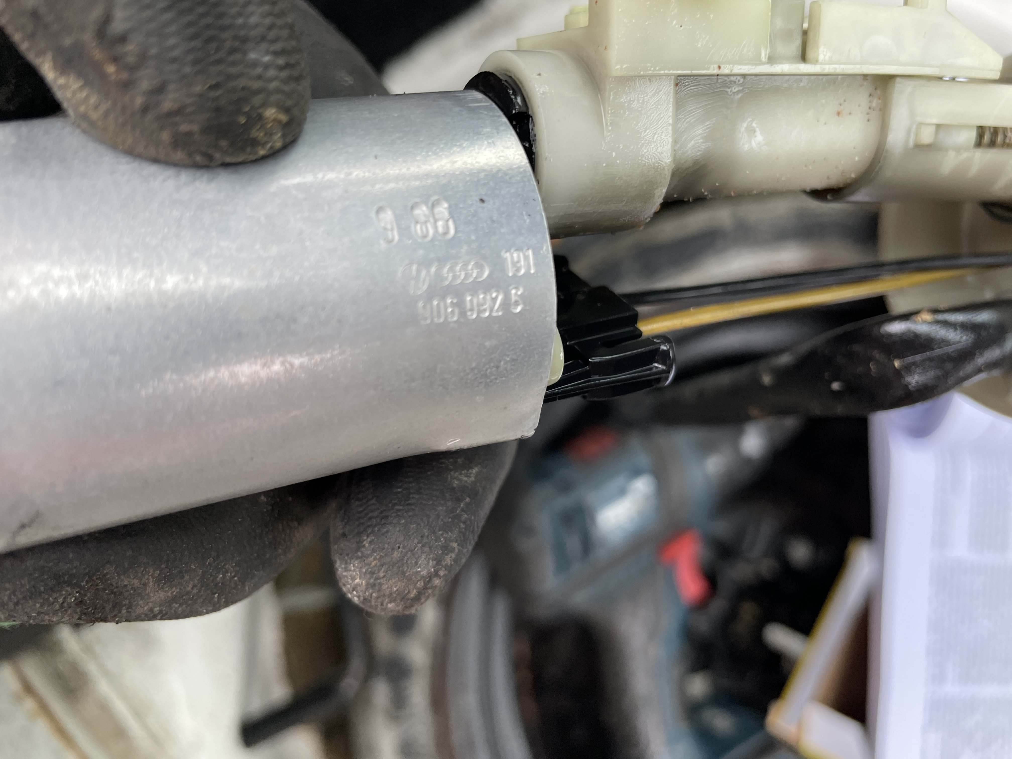 Plockade bort pumpen och såg att den har 3st stift på kontakten. Den jag fick med hem från skroten har såklart 4st… Skiljer det mellan ex 90hk RP motorn och 112hk GTI’n?