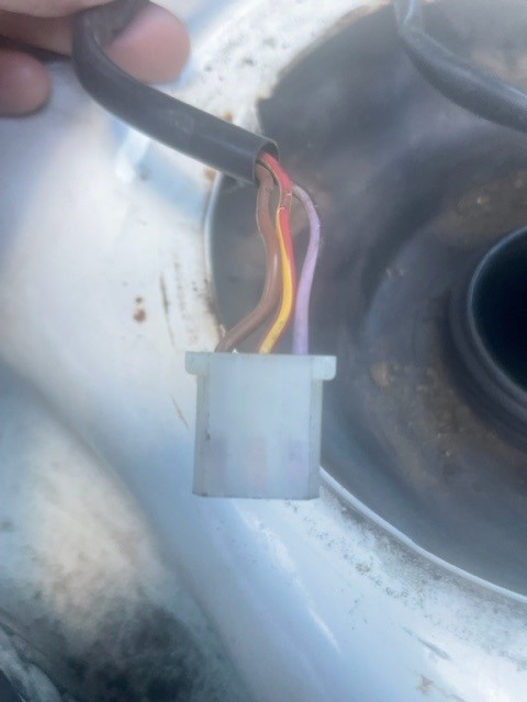 Mäter jag på kontakten till pumpen i tanken så har jag ström på det lila stiftet. Inget på de andra två. (oavssett om den är lös eller monterad på armaturen, på den mäter jag på motsvarsde stift)
