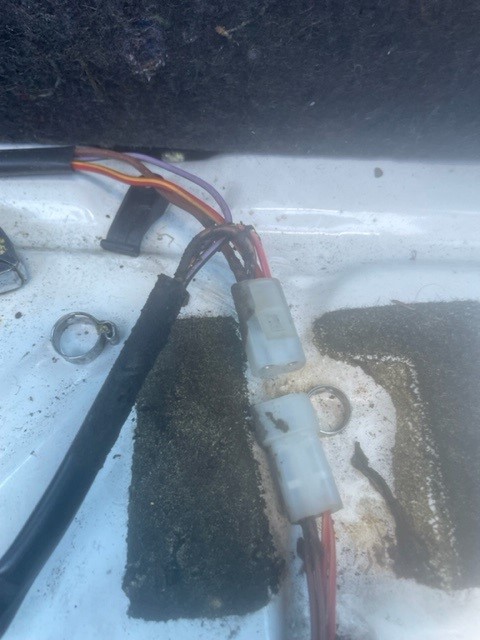 Brun är jord. Gul/röd plus till soppapump och lila är tankmätaren. Båda pumparna skall gå på samma relä. Men bilen startar inte om bara lilla pumpen går. (så länge du har minst halv tank behövs lilla pumpen inte alls, den är bara till för att säkerställa att stora pumpen skall kunna suga när det är lite soppa)