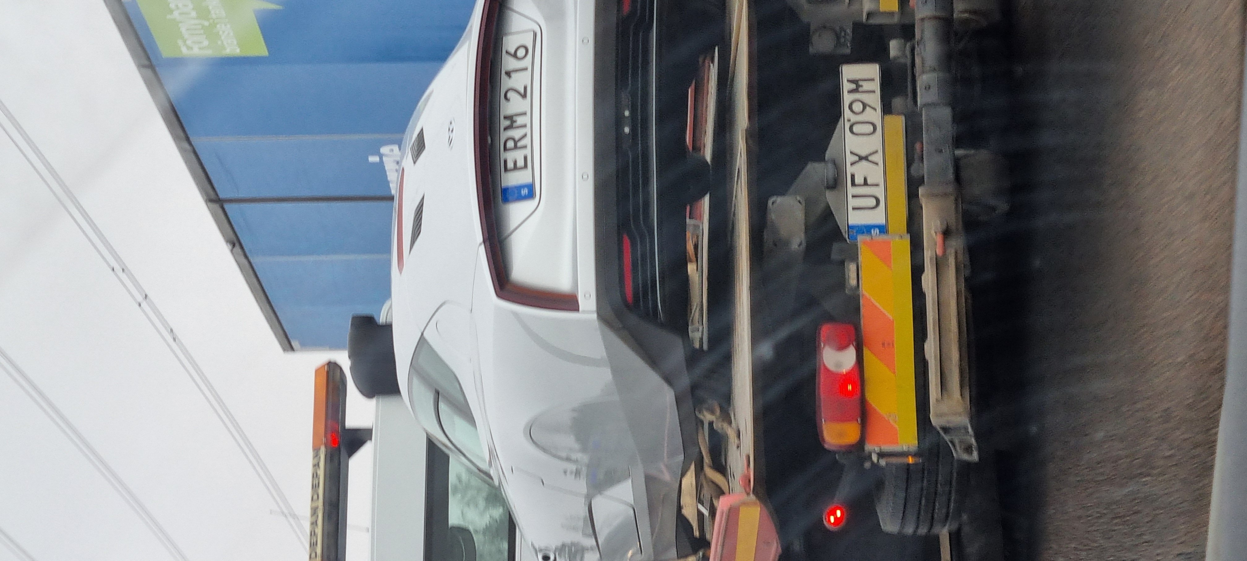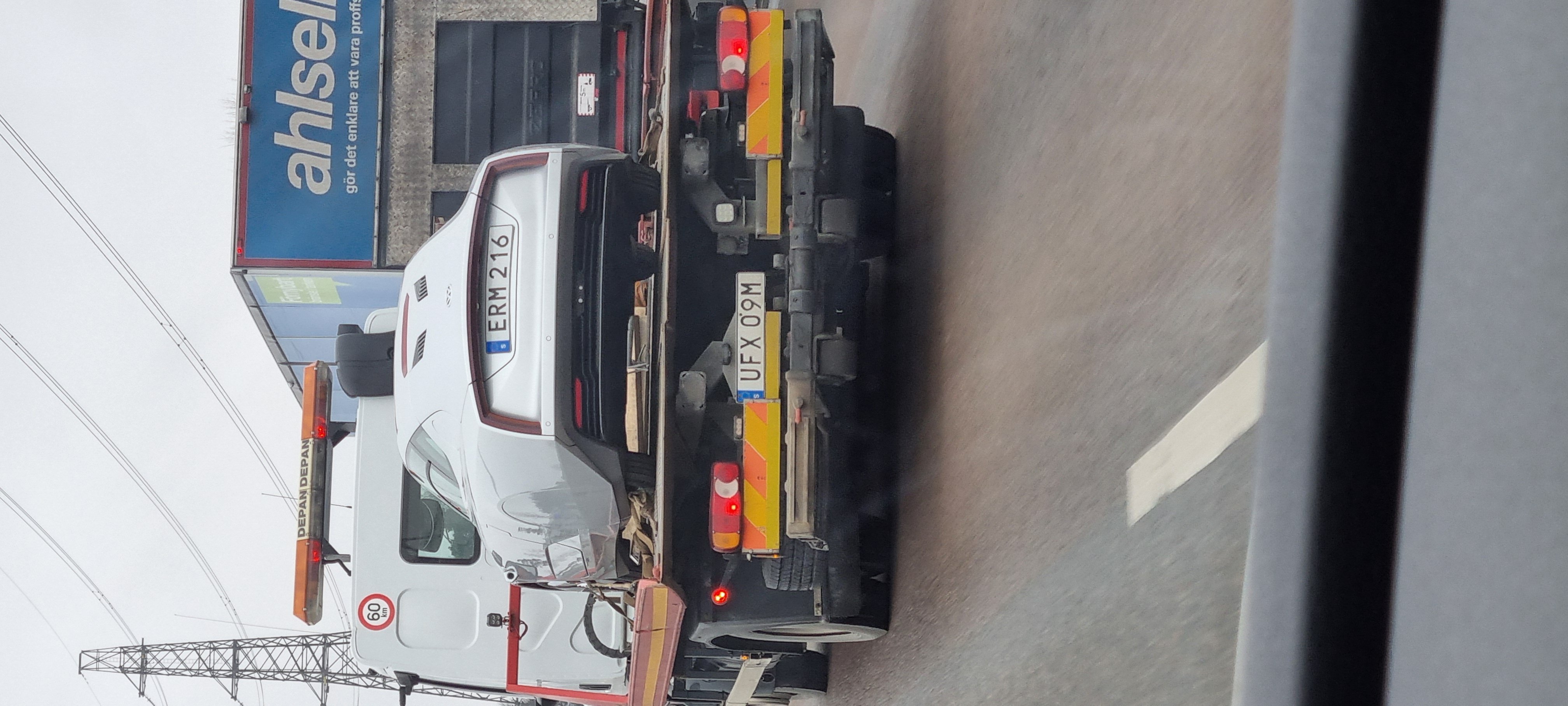 Mystisk bil på väg fångad av mig på E4 i höjd med Bredäng Stockholm i torsdags . Det var VW loggor på fälgarna.
