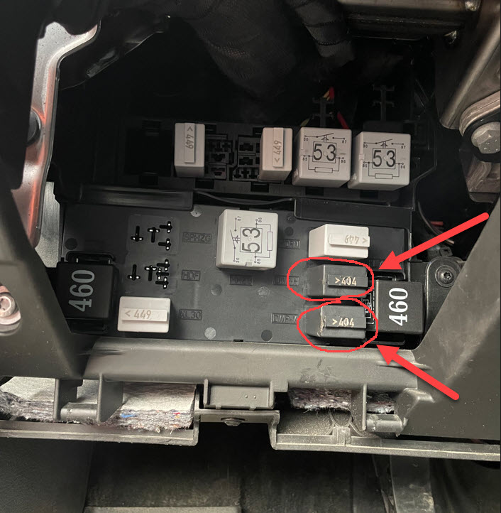 Mäter upp säkring igen. Byter båda relän under rattstången, 2 st. Inget händer.
