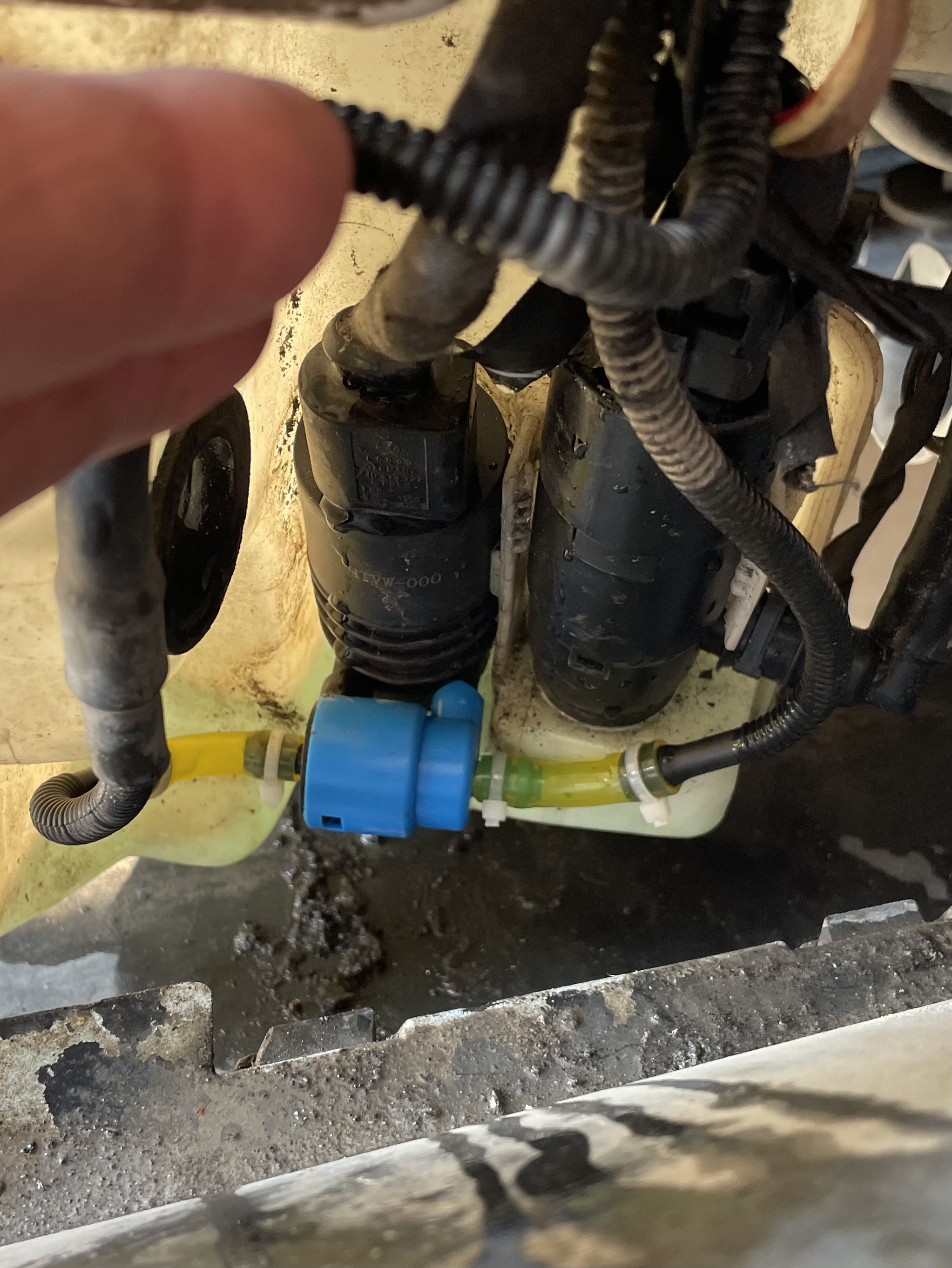 OK, här är storyn. Vindrutespolning fram och bak funkar inte. Inget ljud från pumpen. Kollar säkring. Jag river fram på spolartburken och kollar spolarpumpen. Jag tar lös pumpen och ger den 12V från en laddare. Den snurrar inte, helt död. Köper en ny, blir fel modell såklart. Köper rätt modell. Kollar att den funkar på 12V innan. Kopplar in. Nu funkar spolning på huvudstrålkastare. Då går pumpen helt kort. Men inget på rutorna. Helt tyst från pumpmotor. Ingen respons när jag försöker spola bak eller fram.