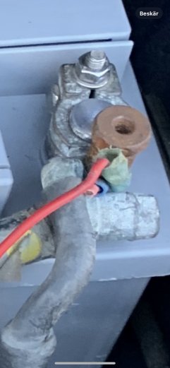 Sen när jag började kolla närmre så hittade jag en avbruten tunn röd kabel från +polen på batteriet. Som jag är osäker på vart den leder, försökt researcha och _tror_ den går till "High power fuses -SA-".