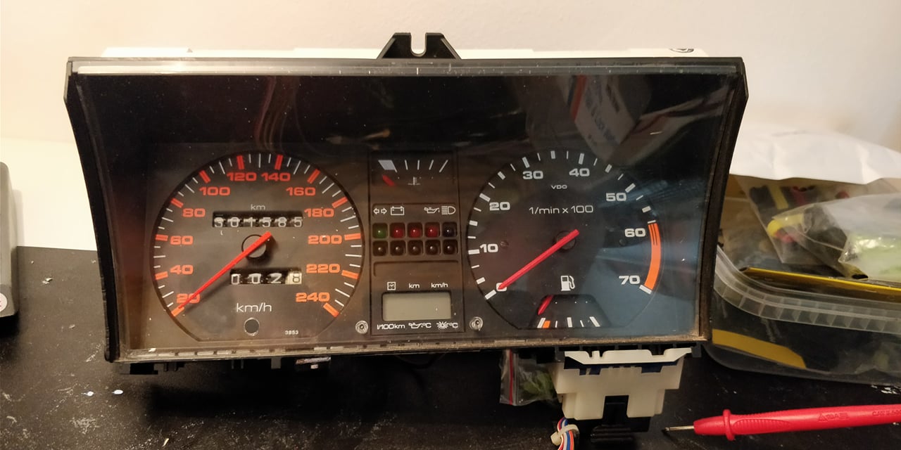 Jag bestämde mig för att det är mätarna som är fel och att kylningen fungerar som den ska, fläkten startar, vag-com visar 90-94C där nålen stannar på temperaturmätaren, bilen kokar inte och trycker inte ur sig någon vätska. Började tänka lite på att det sitter en voltregulator i klustret som används till mätarna, om den ger för låg ström borde både kylvätskemätare och oljetempmätare i klustret visa för höga värden, kom även ihåg att jag fått soppatorsk även fast bränslemätare inte varit i botten. Inte hunnit mäta än men det måste fasen vara det!