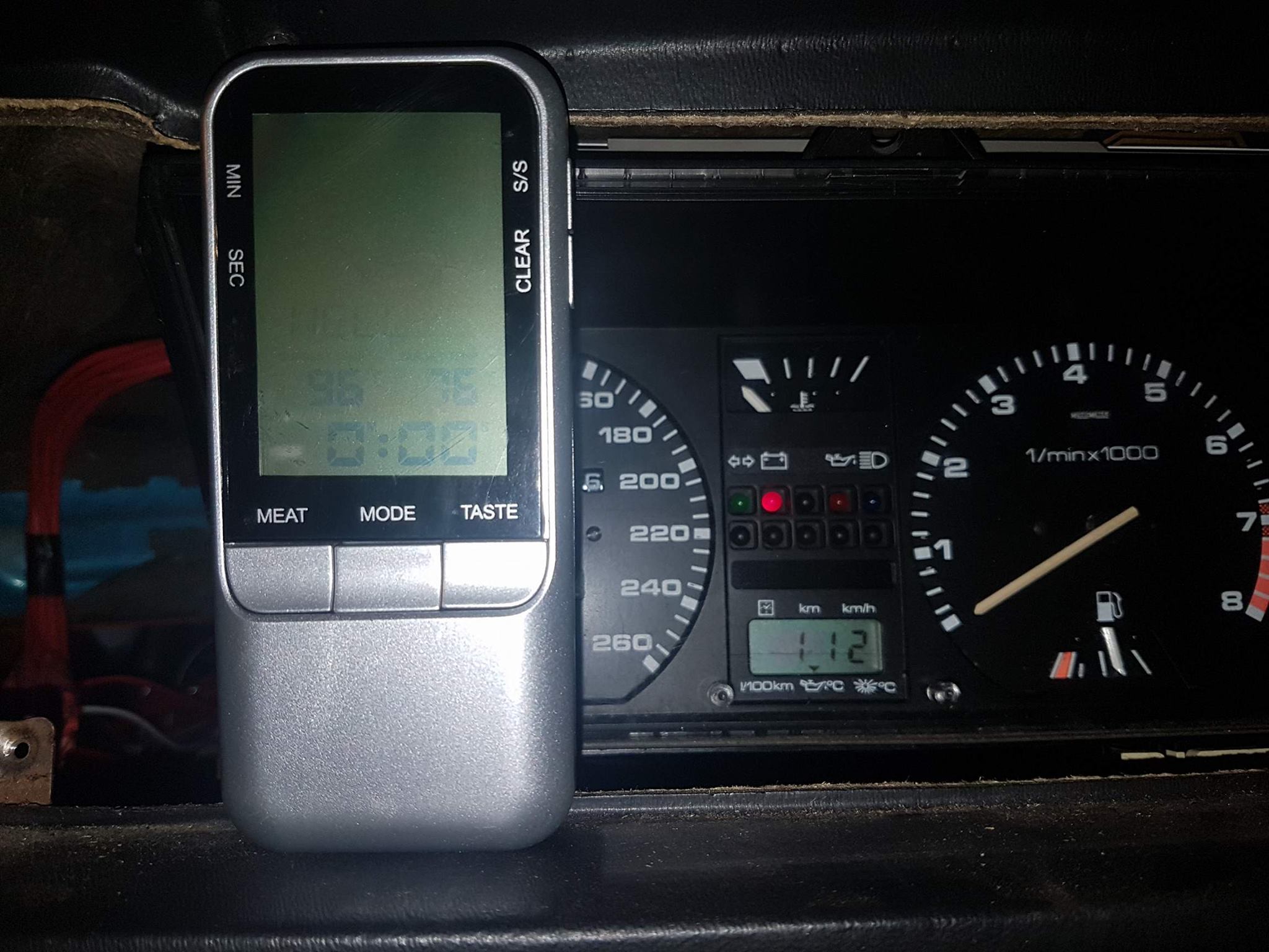 Men början av den här veckan var inte riktigt lika bra, efter jag fick ihop tryckrören och fyllt upp med kylarvätska luftades systemet i vanlig ordning genom att köra ut bilen ur garaget, försöka hålla lite gas och klämma på alla slangar som går att komma åt tills det att temperaturmätaren står någonstans runt 90 grader. Efter det så blev det en provtur och nu har jag ju även en fungerande oljetempmätare i MFA. Lugn körning från garaget och hem resulterade i oljetemperatur på 110C och tempmätare på 3/4.