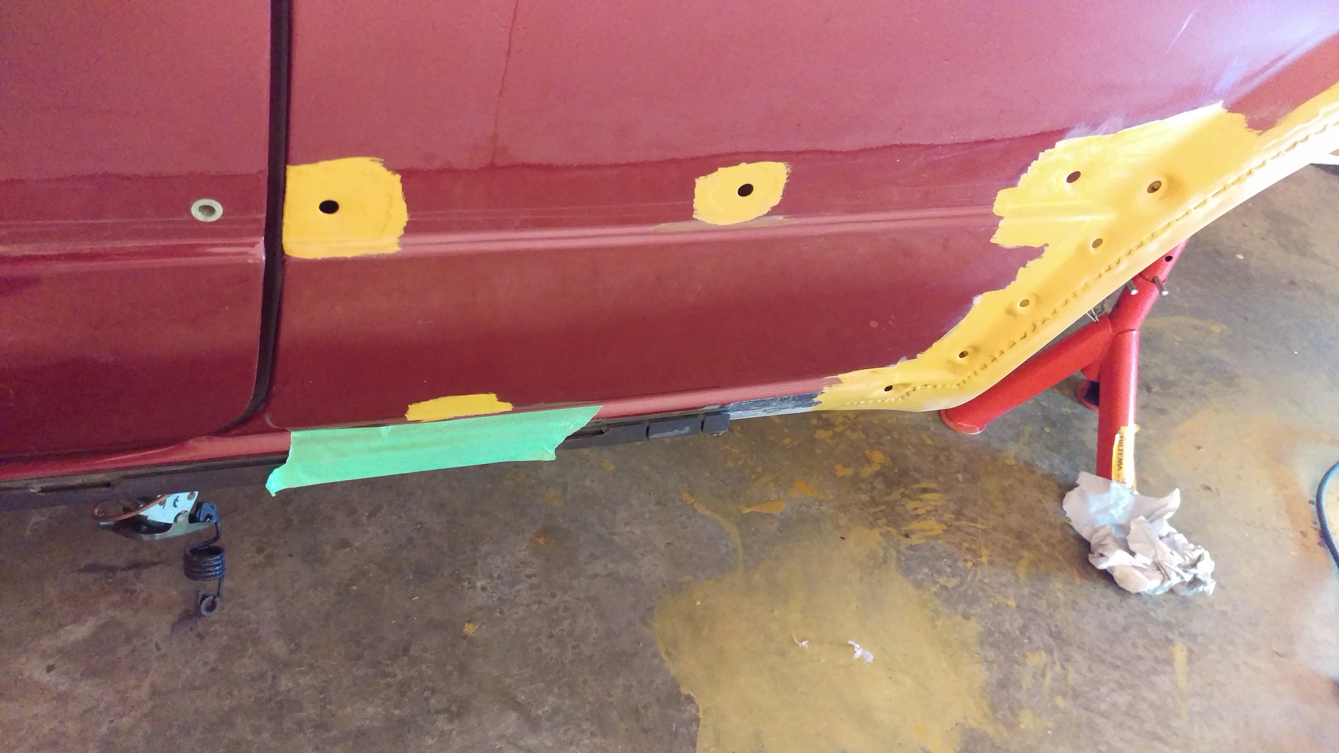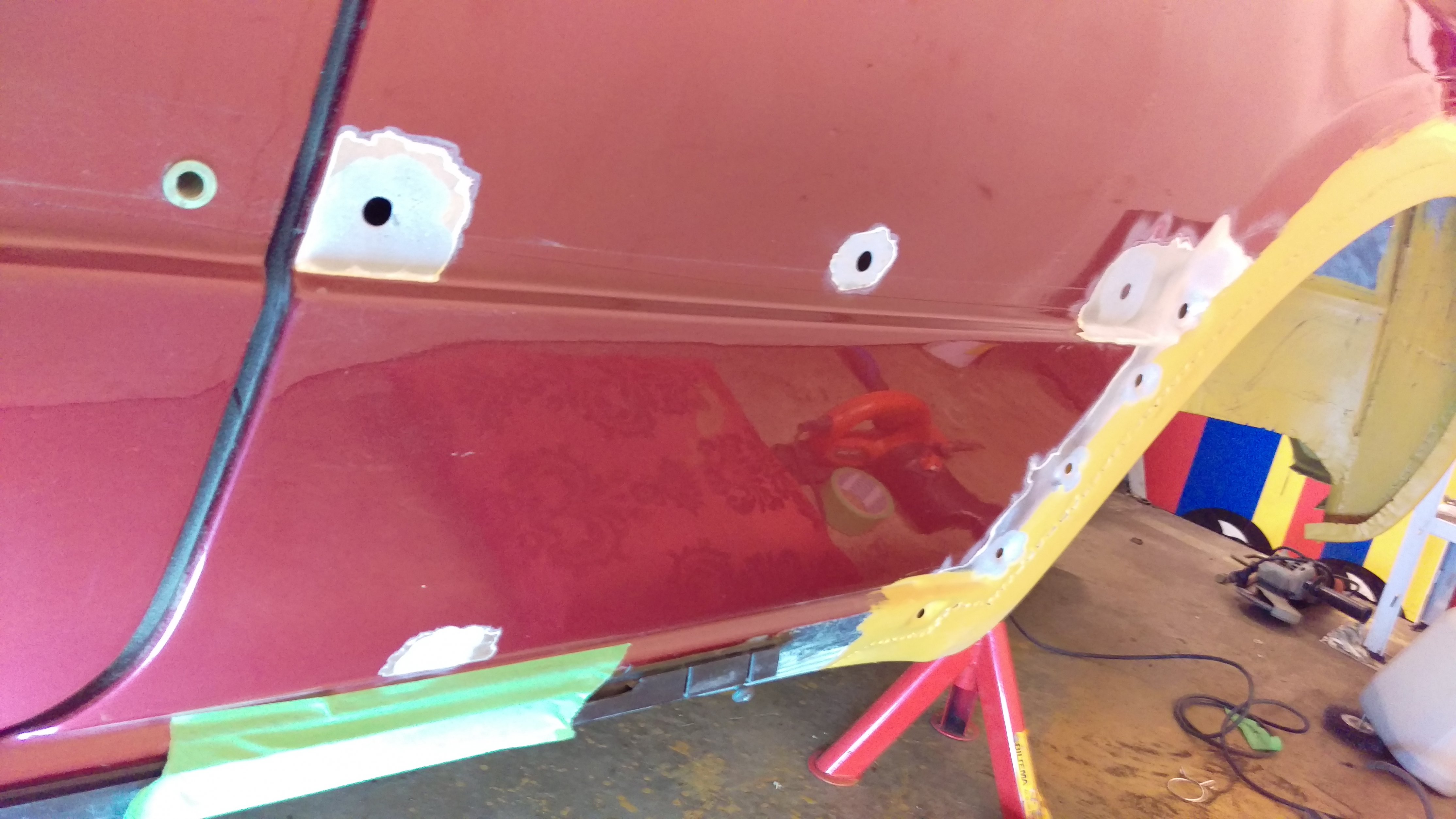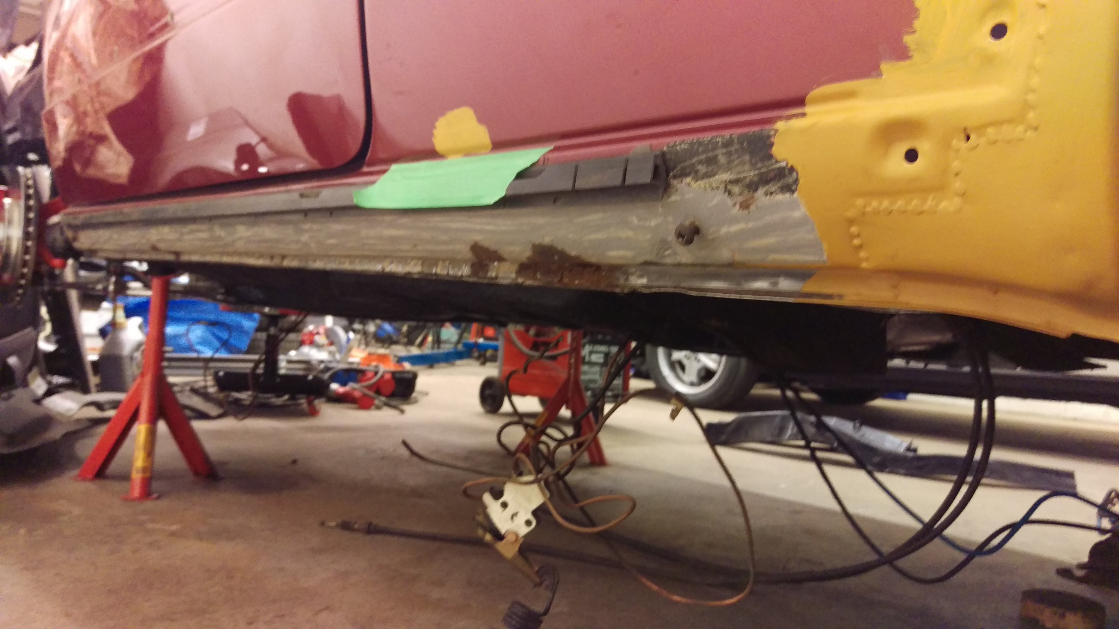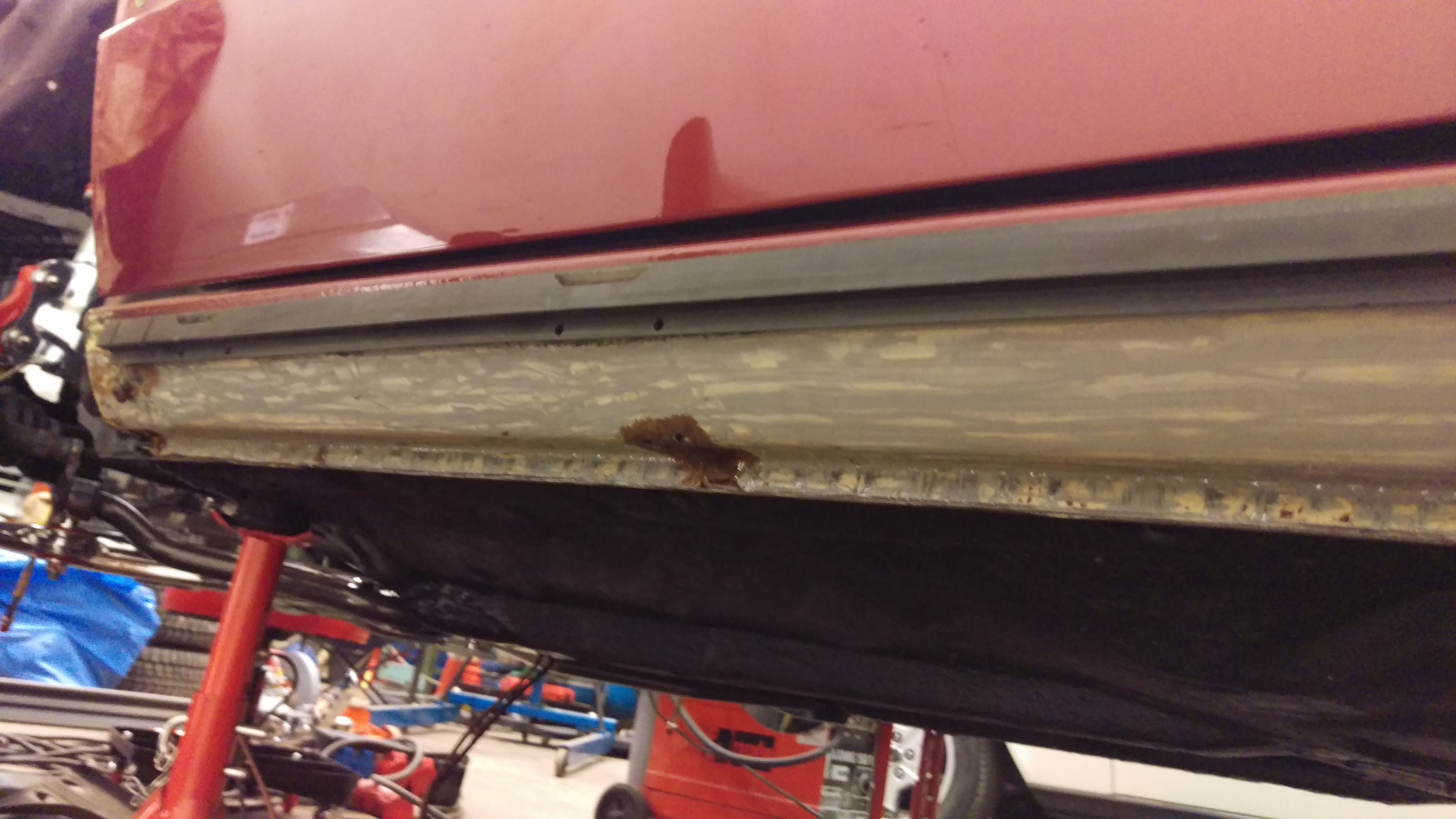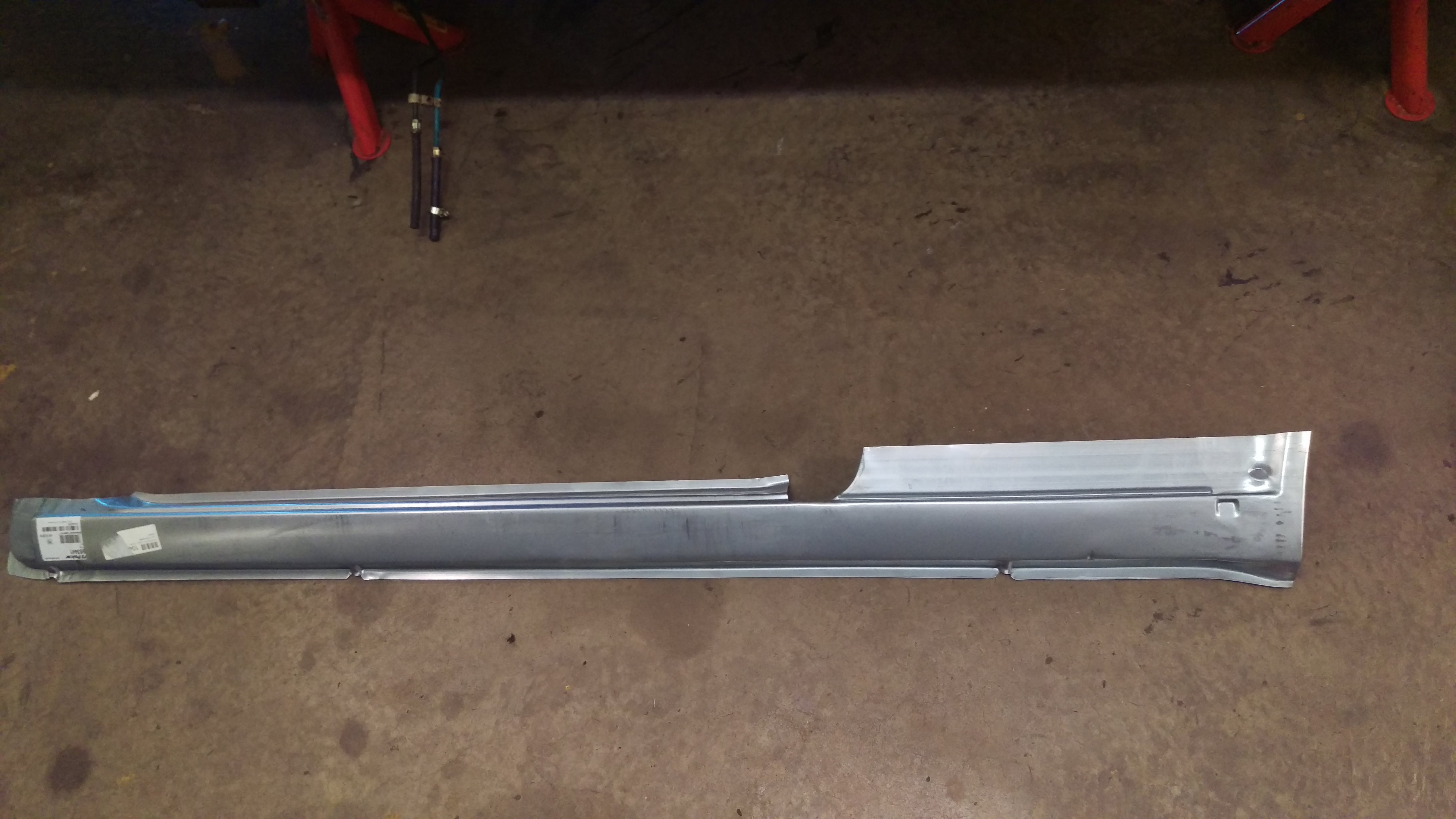 Har beställt en tröskel vänster också som repplåt, är ca 1dm strax bakom B-stolpen som behöver bytas, i övrigt är tröskeln kärnfrisk :) När tröskeln är klar så är det bara fjädertornet som skall sättas tillbaka, sen är vänster sida rostlagad, känns rätt skönt!