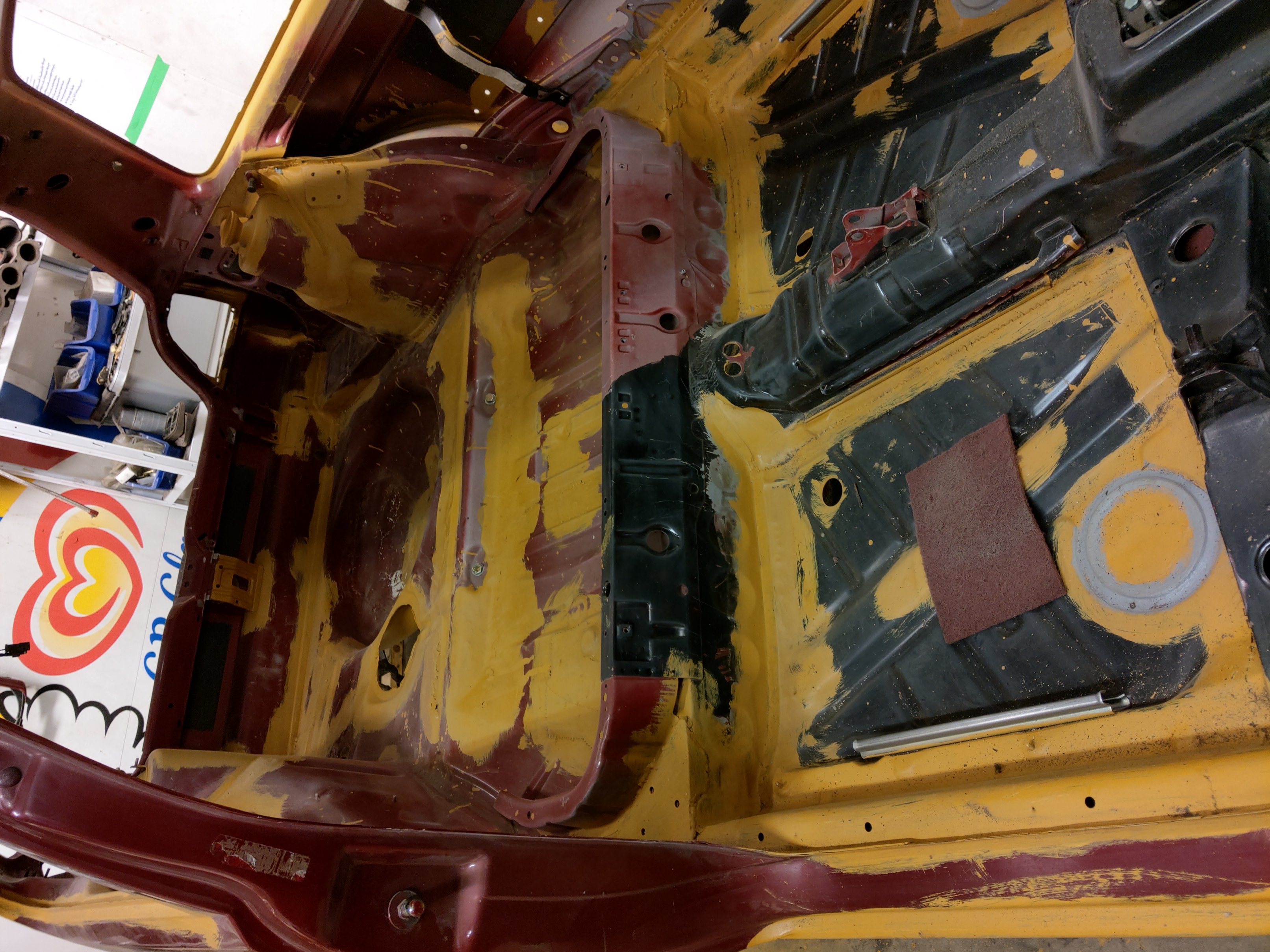 Men är man envis så är man :rolleyes: så igår blev den saknade avgasfästet monterat och de delar som inte var målade lager 1 målade plus att 90% av främre golvet fick lager 2. Så nu är det en liten bit på främre golv plus golvet under baksätet kvar för ett andra lager. Med lite tur så fixas det nästa vecka :cool: