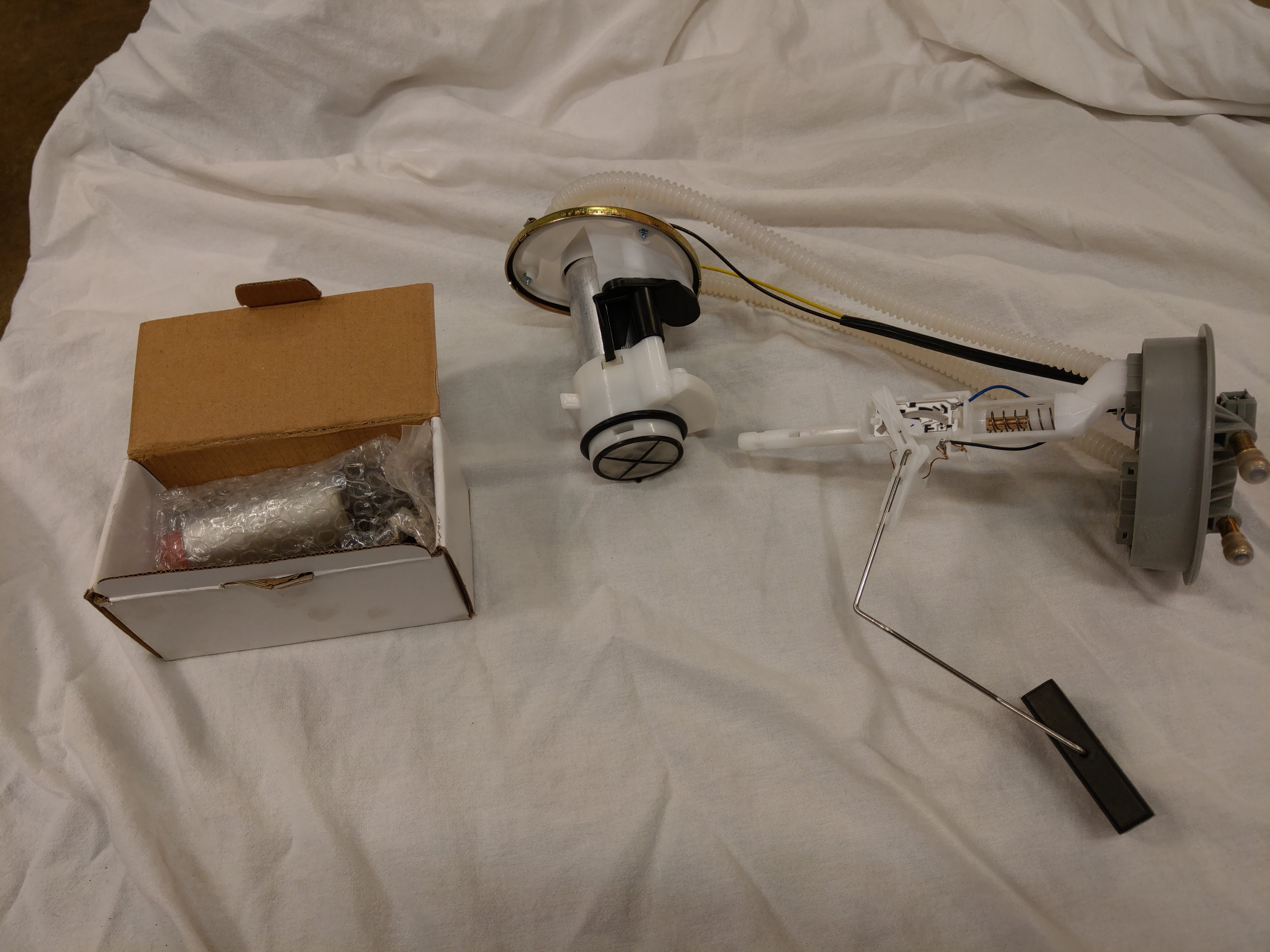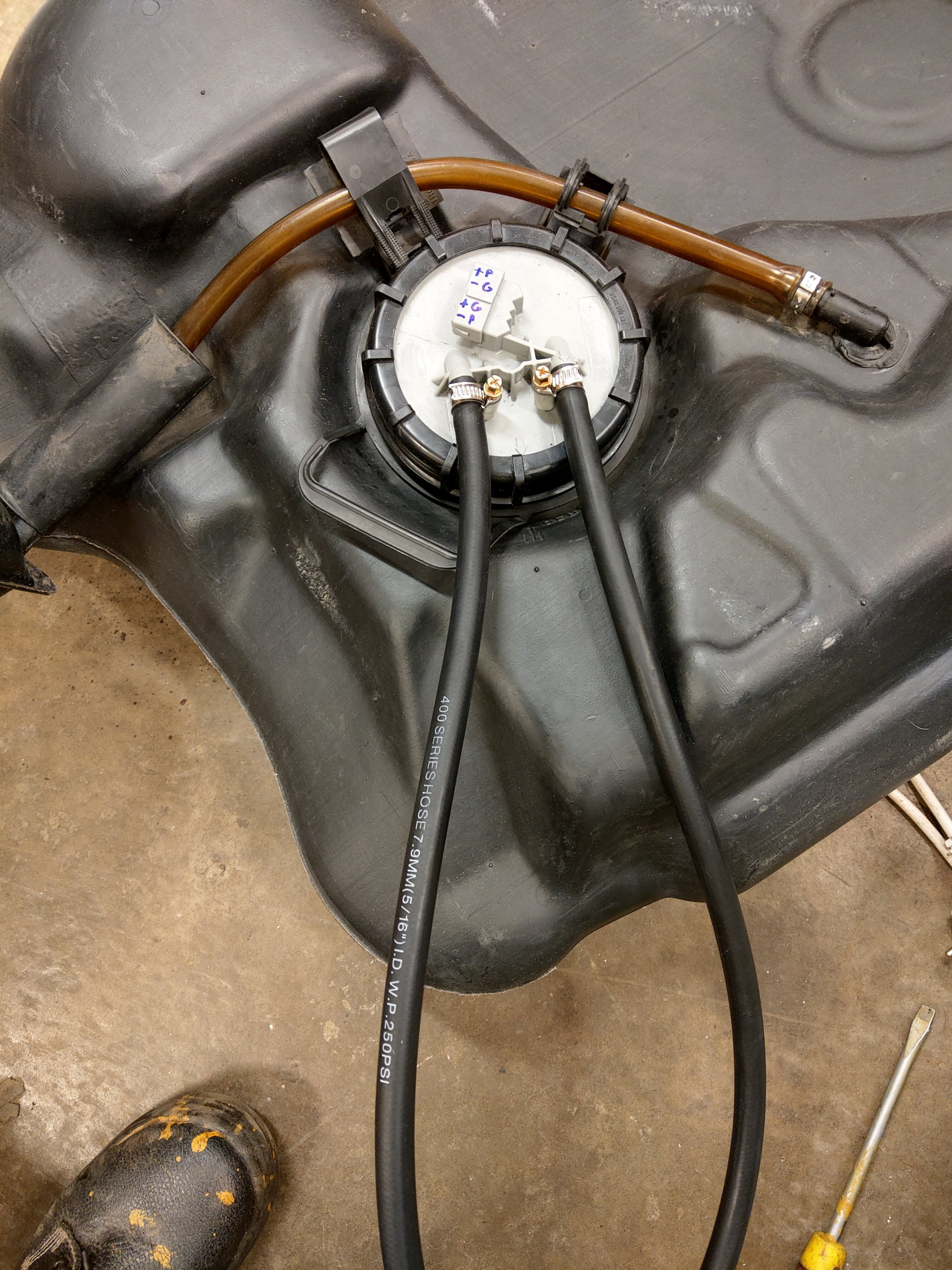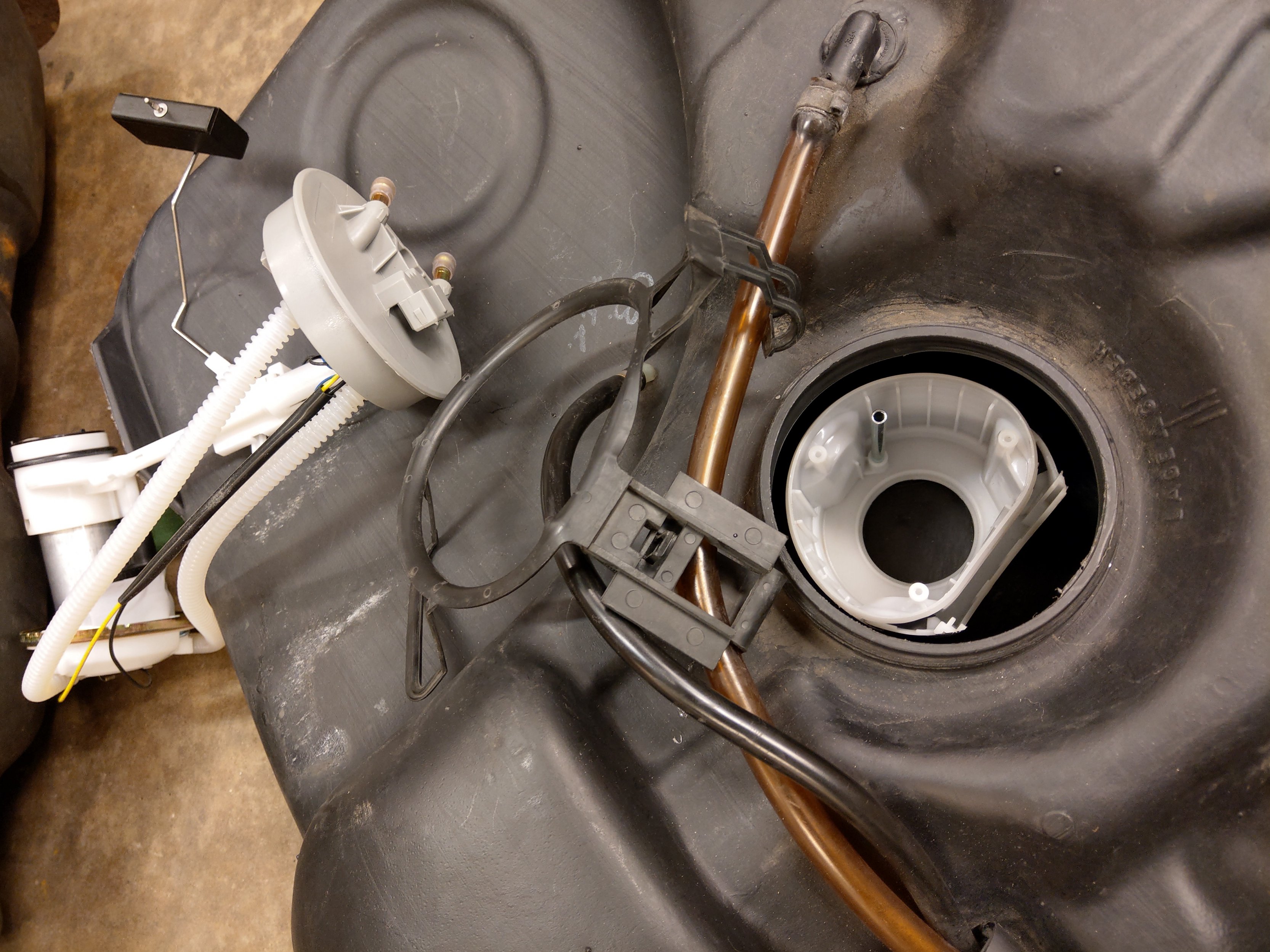 Jag har köpt hela bränslesystemet från Speeding, E85 anpassat så första steget var att bara se hur det skall sitta ihop i tanken. VR6 har ju högtryckspumpen direkt i tanken med en liten integrerad catchtank i hållaren. Så jag testmonterade denna och det såg ut att passa. Dock ser E85 pumpen lite annorlunda ut så jag hoppas den går i hyfsat lätt. Behöver kompletteringsköpa lite slangklämmor innan det kan monteras.