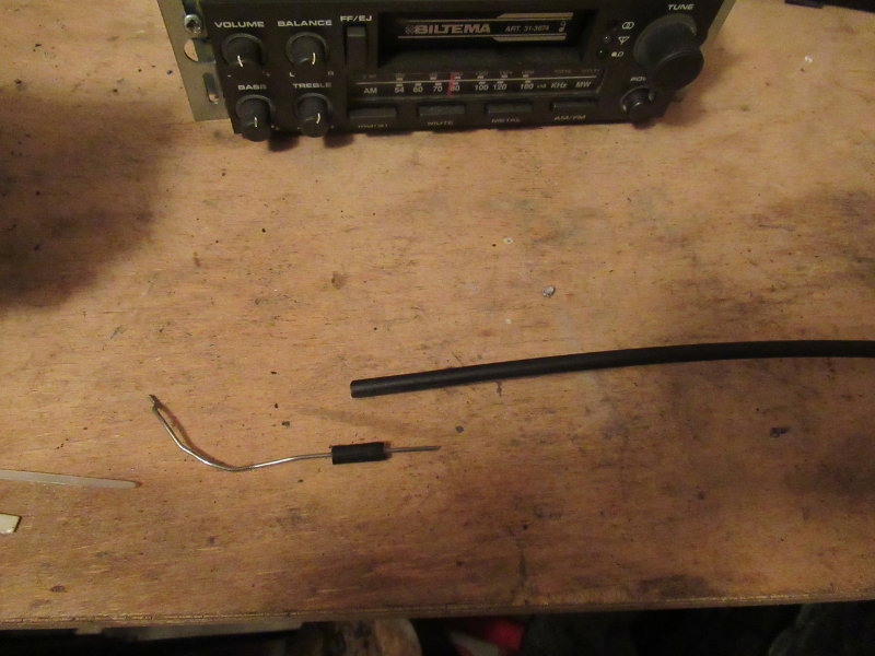 Värme-reglaget sitter tillsammans med övriga reglage för fläkt och luftflöde under stereon som fick tas ur. Jag lyckades böja upp klämman som höll vajern på plats inne i bilen så att den gamla vajern gick att få loss, men sen gick det inte att klämma dit den nya vajern med klämman. Då fick det bli en lösning med buntband och el-tejp för att hålla den på plats.