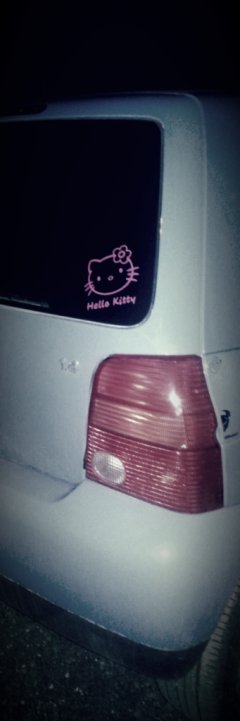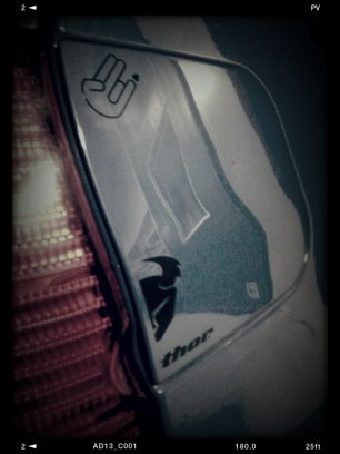 Det satt nå gamla dekaler på insidan som torkat loss.