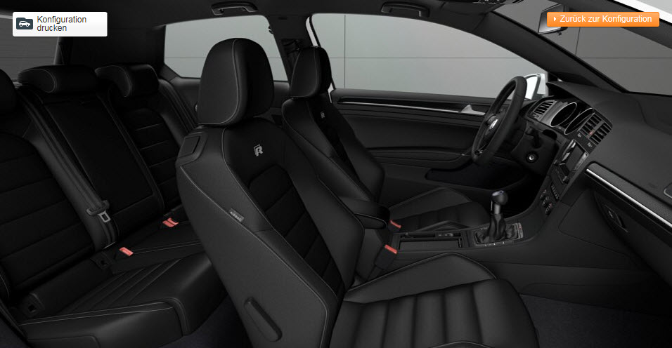 Läderklädsel Vienna lär se ut som läderklädsel Vienna i övriga Golf med Top Sport säten och Vienna läder med tillägget att det är med R-logga.