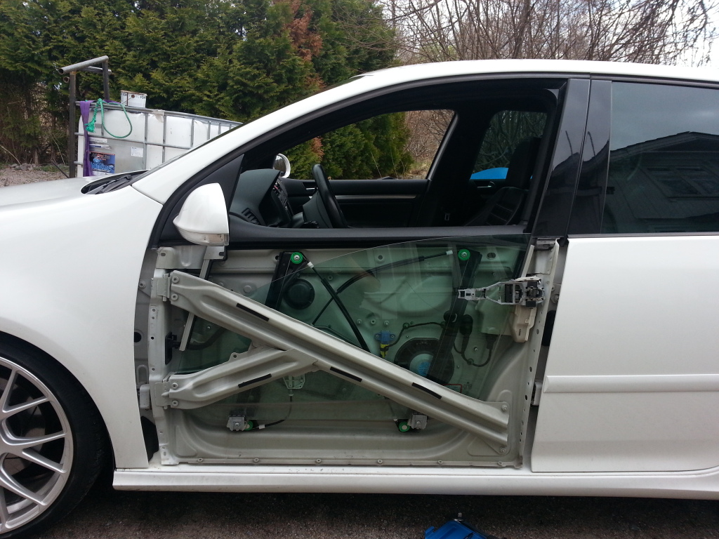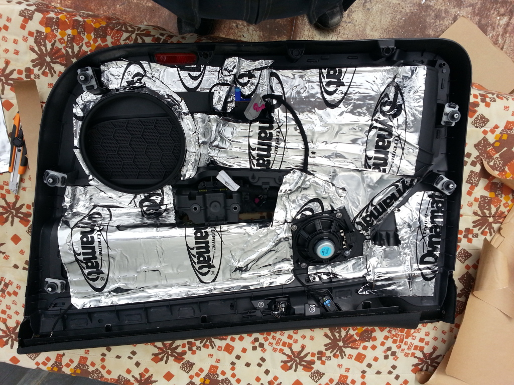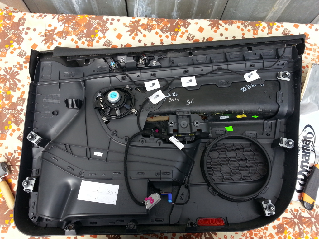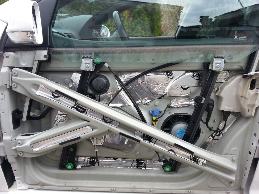 Har stört mig på ljudet i bilen. Originalhögtalarna är inte alls tokiga men sättet VW har monterat och byggt det är sämre. en stor 8" bas med massa lös plast framför i dörrsidan som bara ber om att få skramla när man vrider upp musiken lite. så i går tog jag tag i saken och skruvade isär dörrarna för lite dämpjobb.