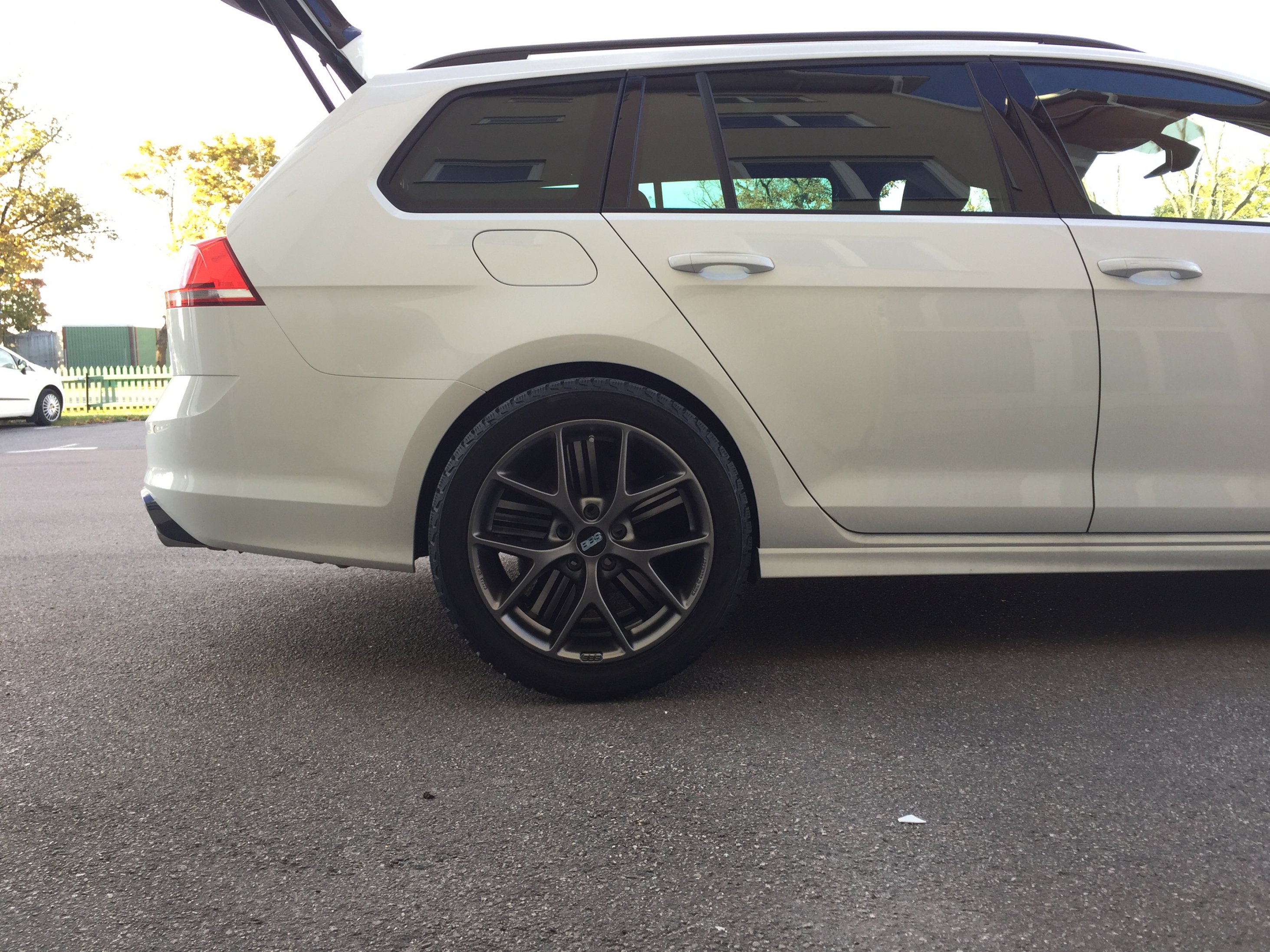 Firman jag köpte ifrån hade dock passningsgaranti och har sett en del bilder på Golf R med dessa fälgar.