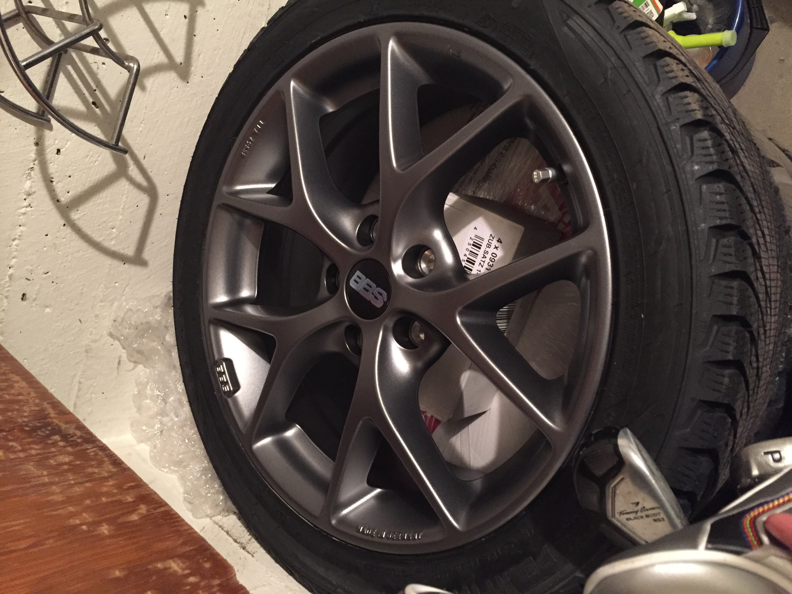 Har inte monterat ännu, på bilden är hjulet bara ställt framför sommardäcket.