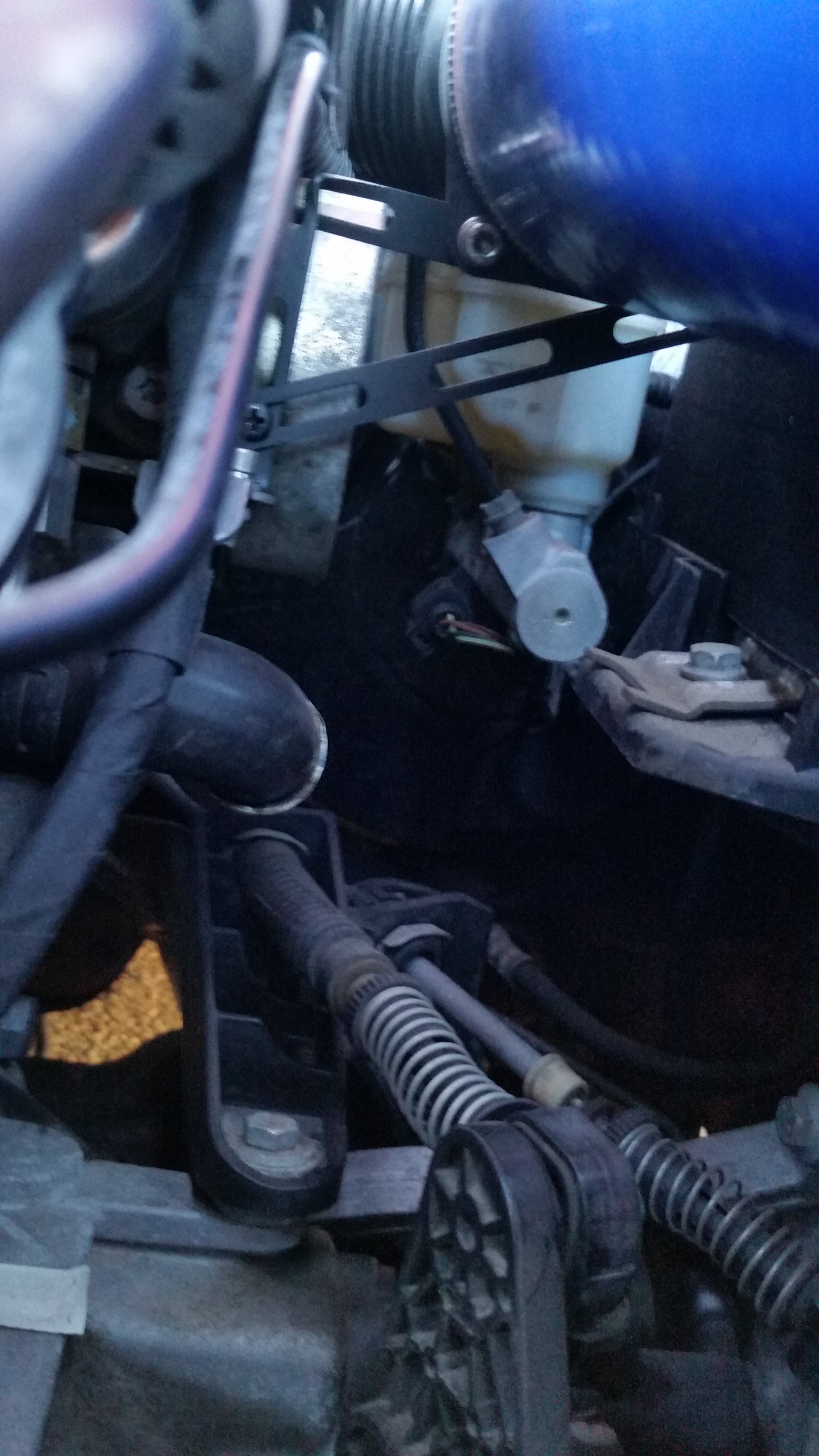 För att stabilisera det då luftboxen nu försvann och silikonslangen ligger "löst" i den silikonskyddade kanten för avskärmingen så köpte farsan en hållare för extra ljusen och byggde ett krysstag som fästes i det nedre hålet på LMM-delen.