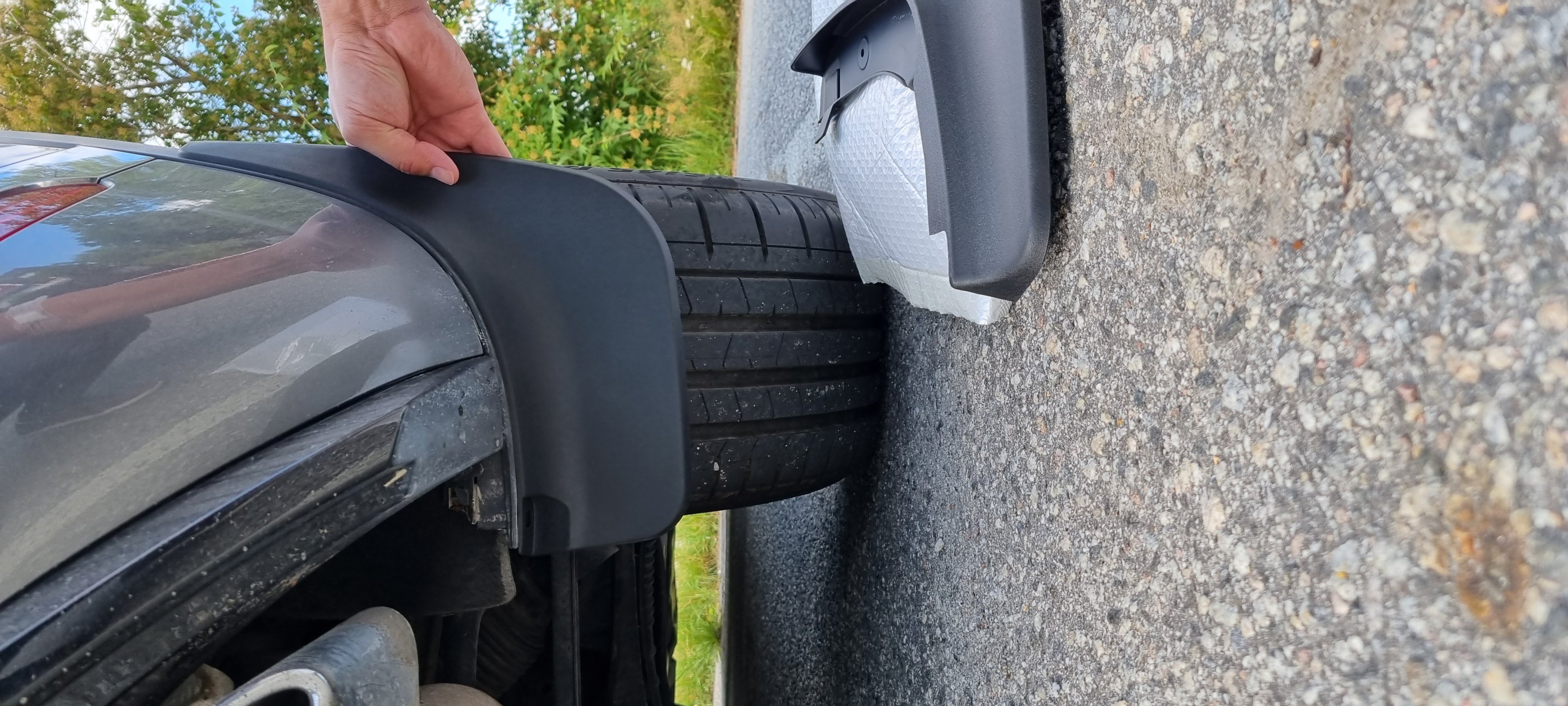 Helt ok passform på stänkskydden, gott om skruvar och fästdetaljer med. Med det sagt så var det inte 100% PnP men nära på. Perfekt med luftfjädringen. Höjde upp till terrängläge så gick det bra att skruva utan att ta av hjulen ;)