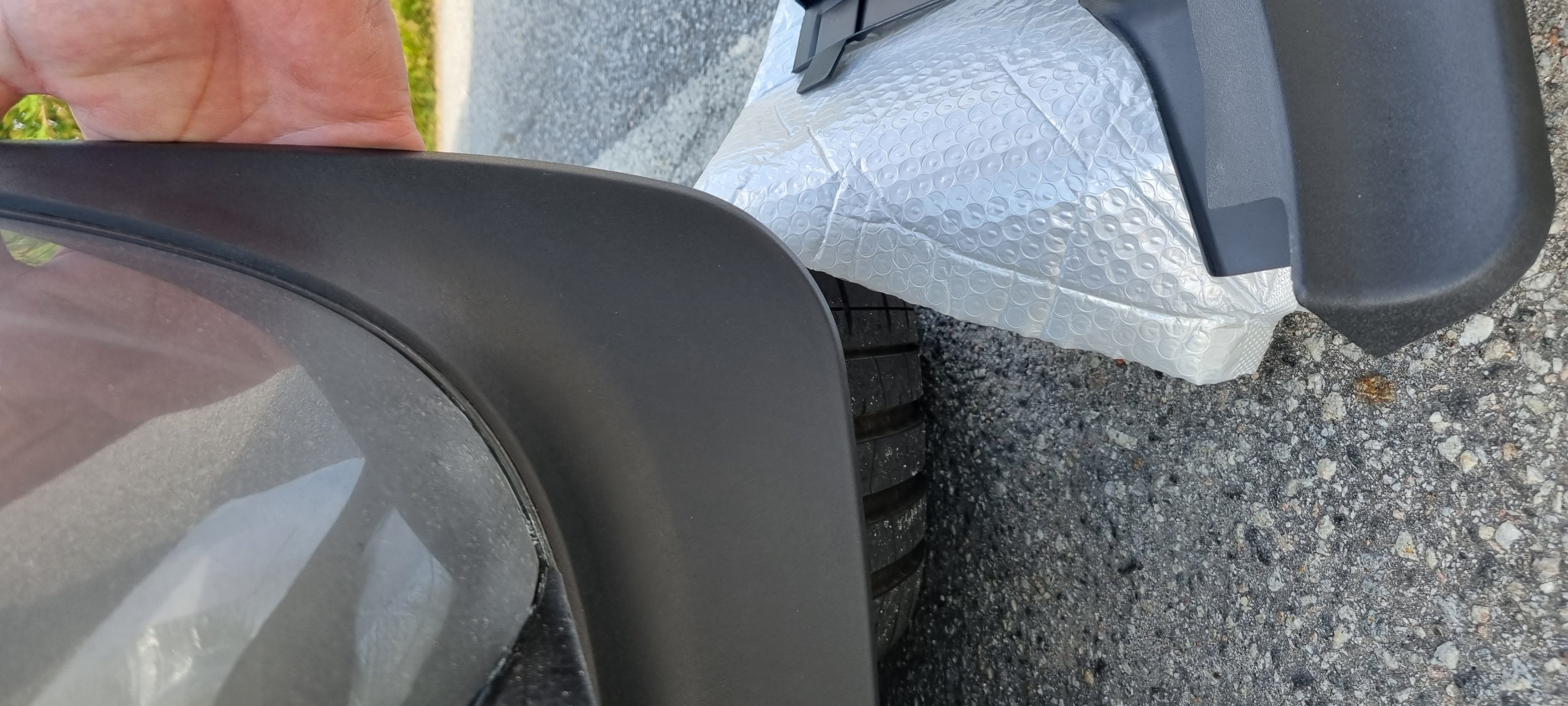 Ja precis, som jag skrev så spelar skuggorna och ljuset ett spratt. Ska ta nya bilder helt enkelt. Tittar på stänkskydd men har inte beställt nåt ännu. Finns ju allt ifrån jättestora mudflaps till lite med diskreta, och allt passar inte med R-Line och det är sällan beskrivet. Som vanligt.
