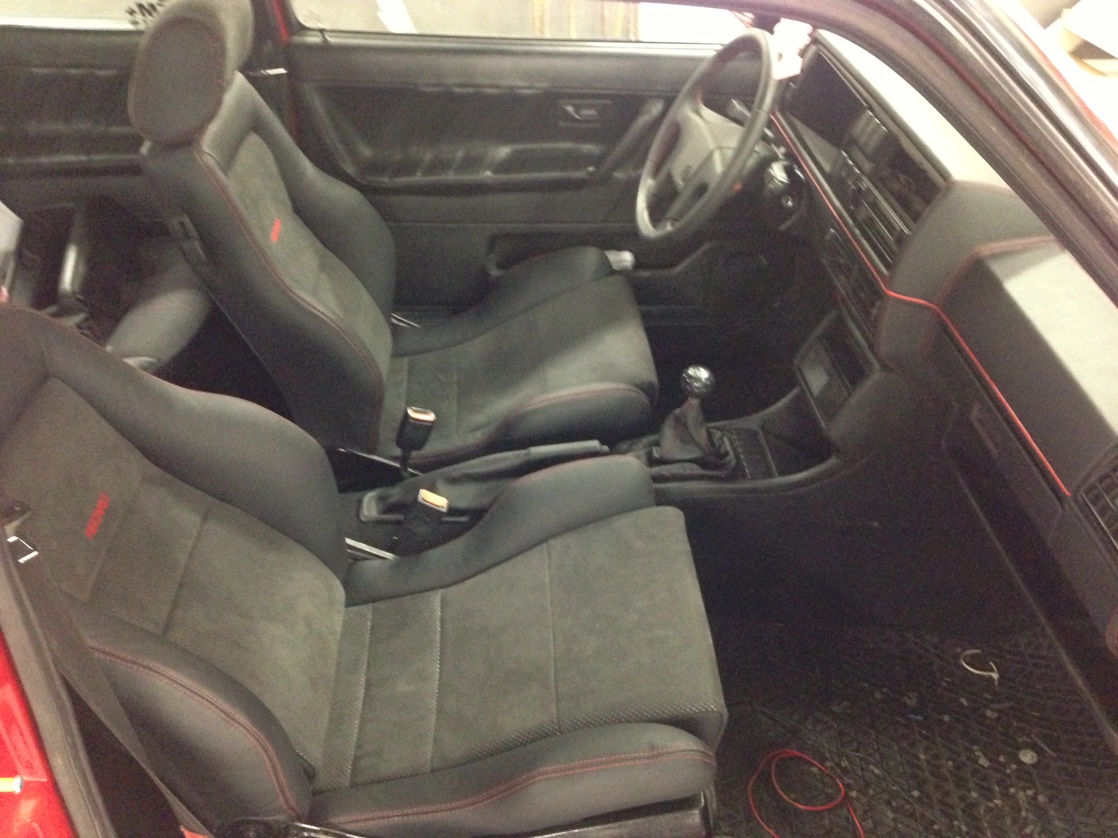 Nu återstår att baksäten skal kläs om och kanske dörrsidorna så att det blir samma nyans på skinnet i hela bilen!