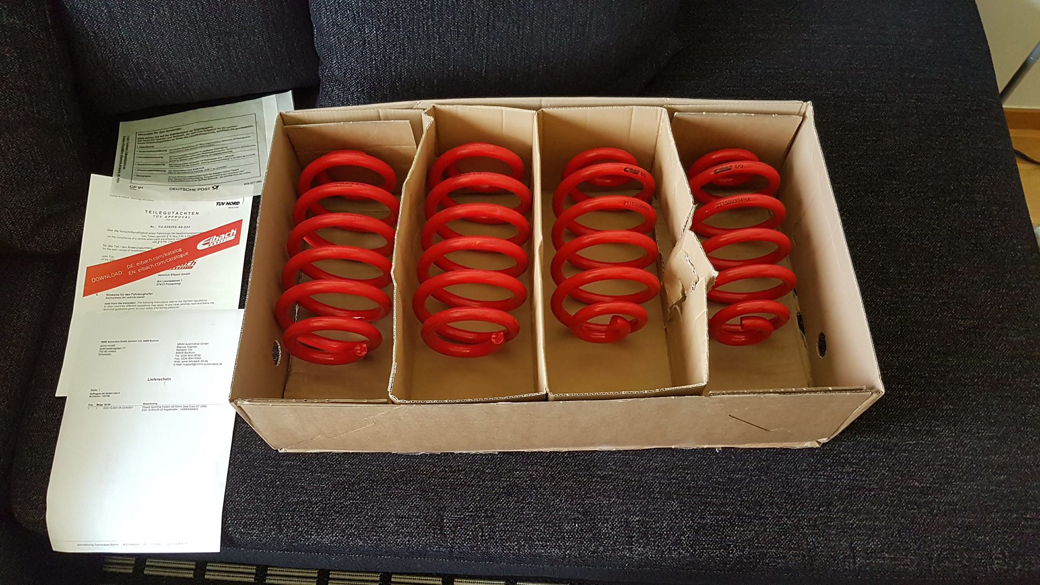 och beställde dessa eibach sportline fjädrar på ebay från tyskland kostade 1755.15kr med frakt o allt tog 6 dagar bara med dhl ifrån tyskland o fick de levererade idag hem till dörren :D