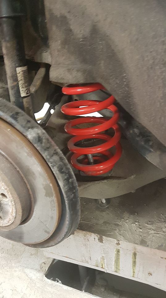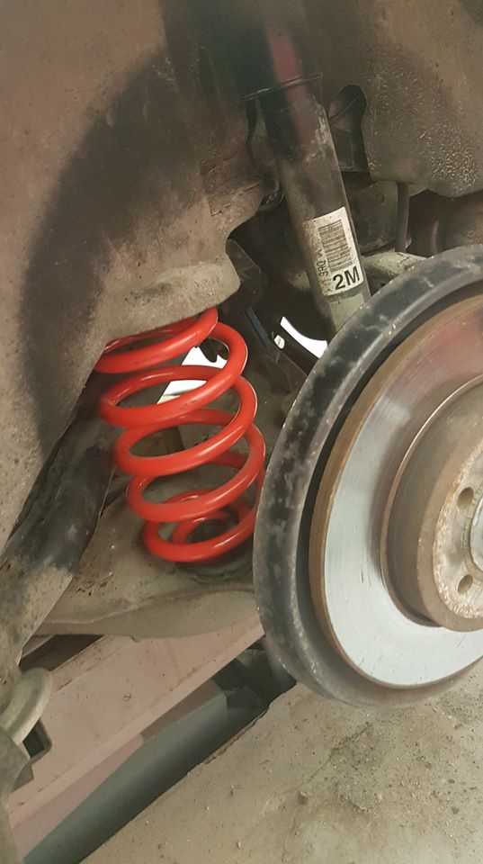så blev till att kolla efter nya fjädrar så till slut föll valet på eibach sportline fjädrar sänker 45/30mm fram/bak på de som inte har sportchassie