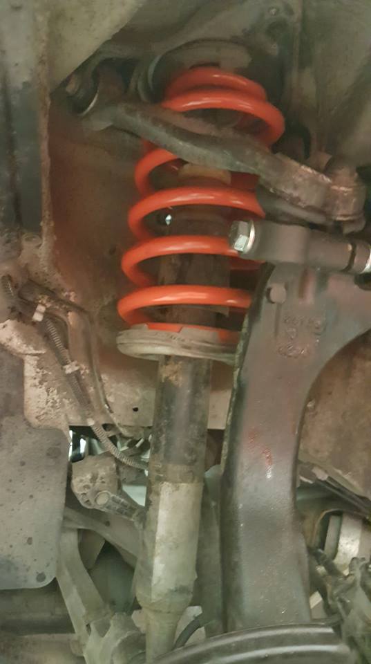 så fick borra ur och montera i nya och man var tvungen att släppa ner bakvagnen så man fick ur fjädrarna bak men men nu sitter de på plats iaf