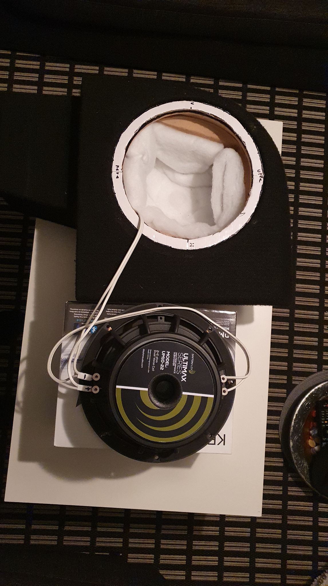 hejsan var ett tag man uppdaterade här så en del nytt har hänt gas pro 10d2 basen är numera utbytt då den inte pallade trycket och ja blev sönder spelad helt enkelt så numera sitter det en dayton audio um10-22 bas i lådan ist har även bytt ut gallret till ett digital design som har ribbor som går längre ut annars hade basen tagit i när den slår ut här kommer lite bilder