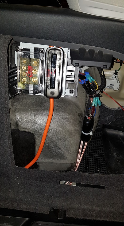 fördelnings dosan för strömkabel och jordkabel monterad på original slutsteget