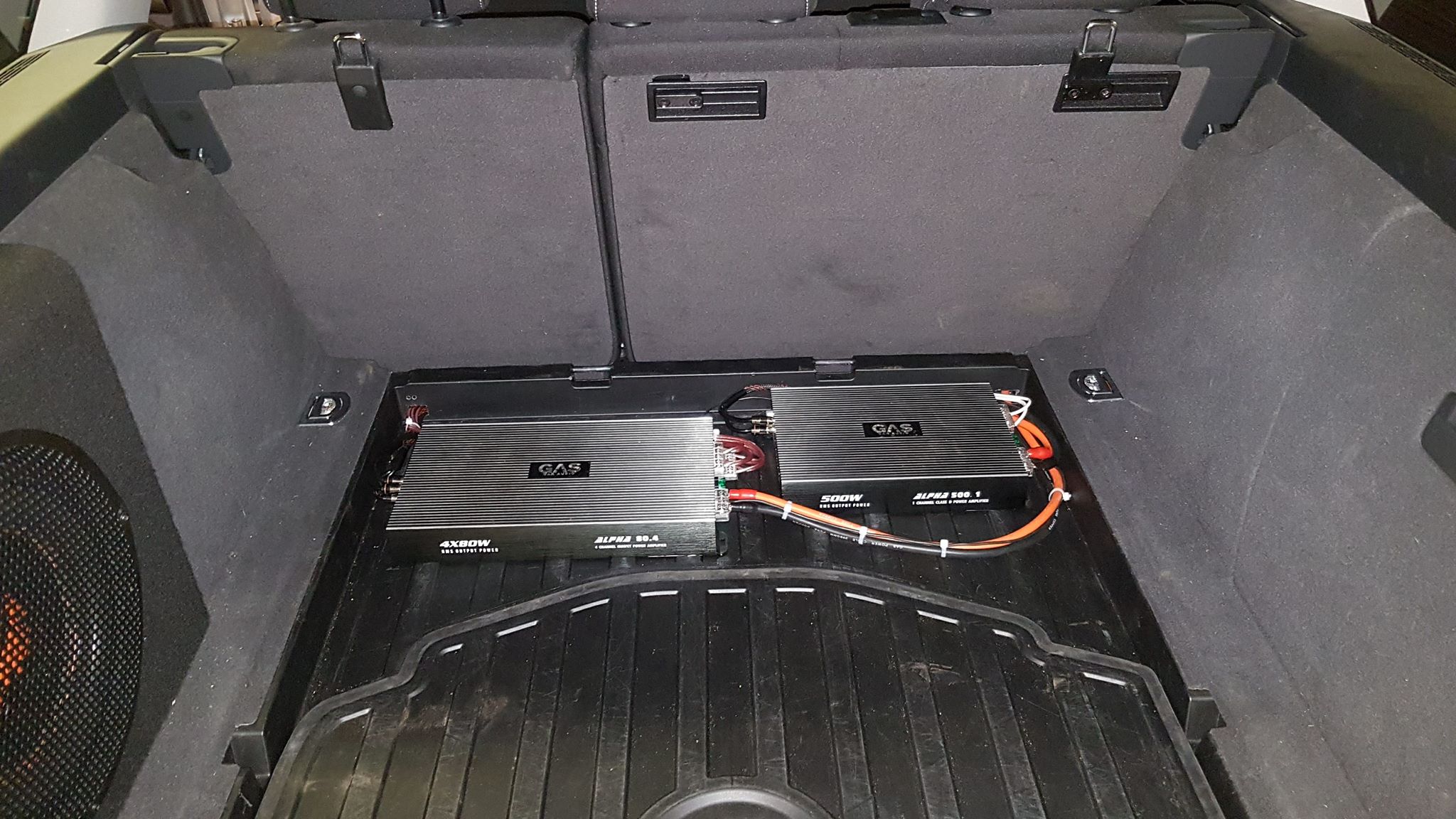 flyttade även slutsteget till baslådan som satt i högersidan bakom luckan så nu har jag båda slutstegen under luckan i bagaget