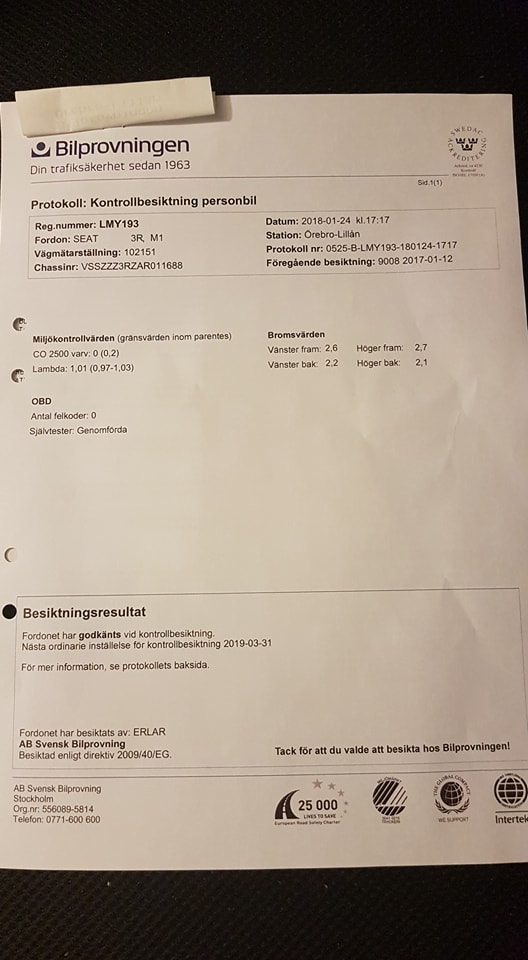 igår så bar det av emot den första besiktningen sen vi köpte bilen och det gick bra inga fel och blankt papper :D
